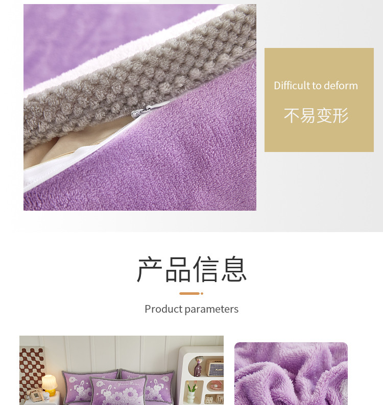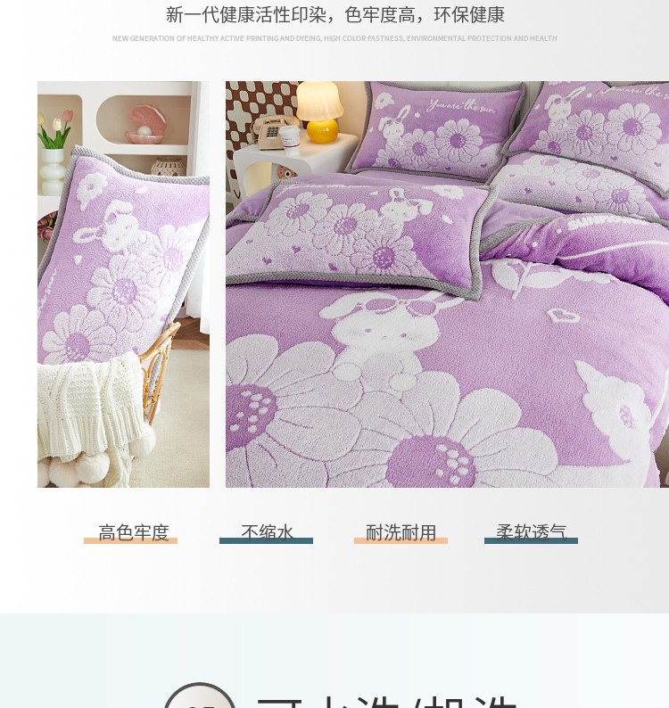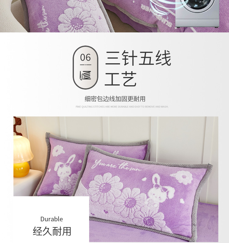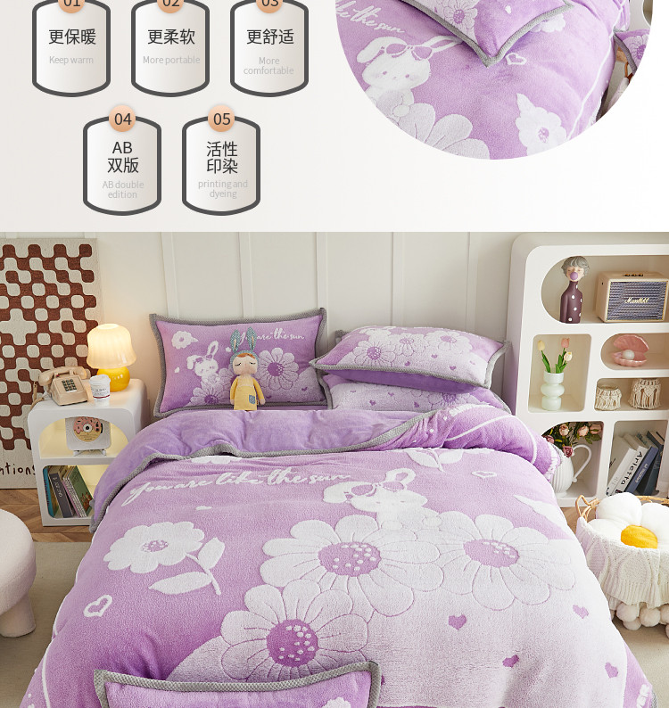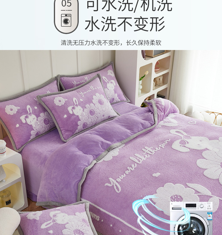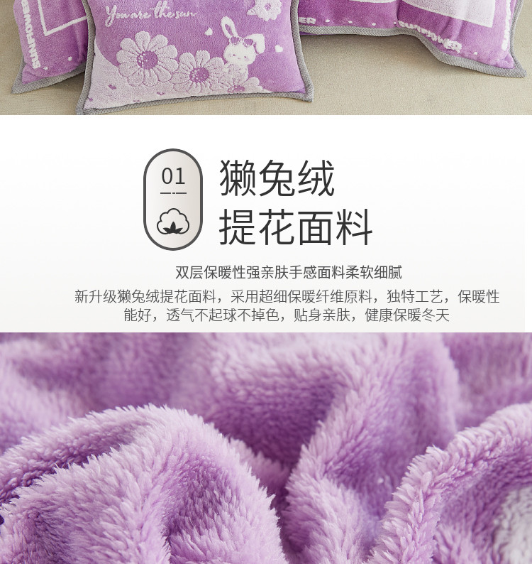 商品名称:丝羽坊 2022新款獭兔绒大版提花四件套 向日葵兔紫色