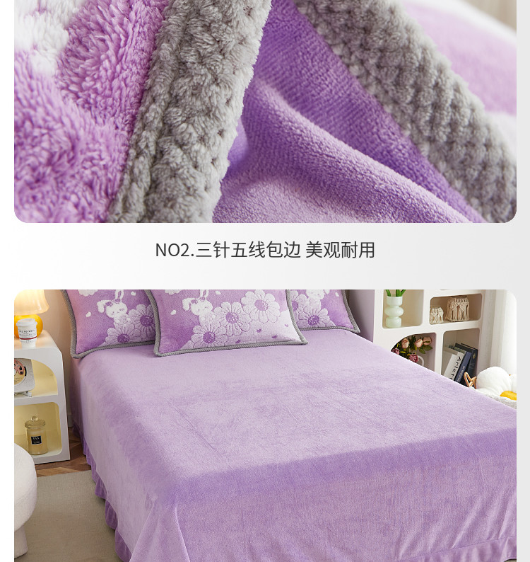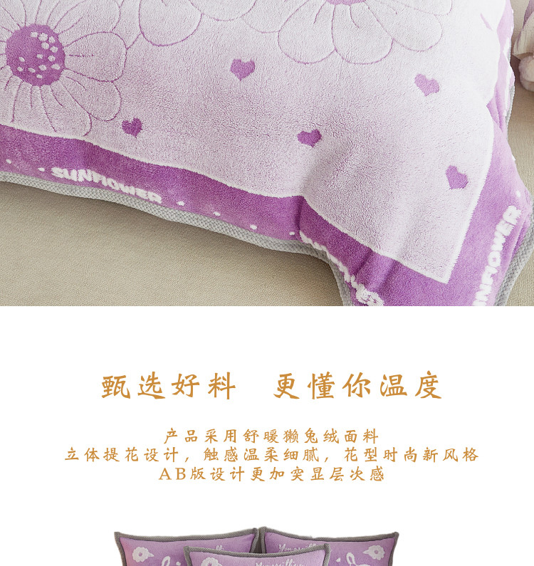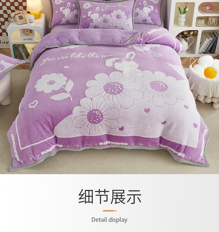 丝羽坊 2022新款獭兔绒大版提花四件套 向日葵兔紫色