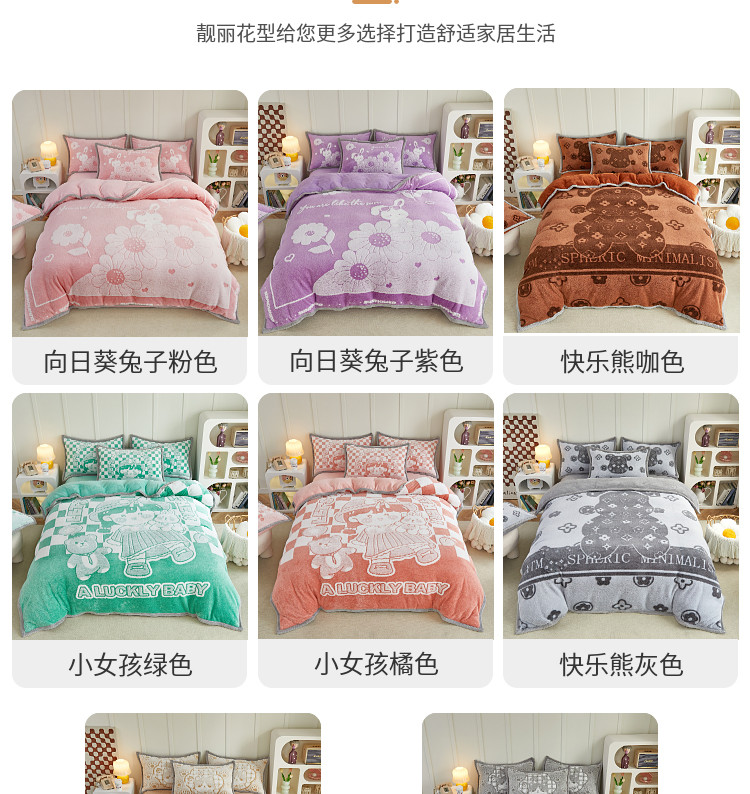 (总)丝羽坊 2025新款A类潮款加厚牛奶绒四件套,软萌宝贝,奶芙猫咪,蓝调汪汪,萌趣玩偶,灰调萌犬,抱抱熊,彩色蝴蝶结,粉粉喵窝,花裙女孩,紫色喵影