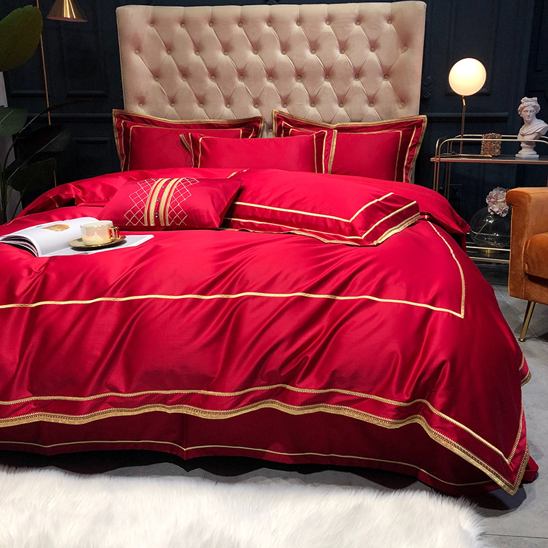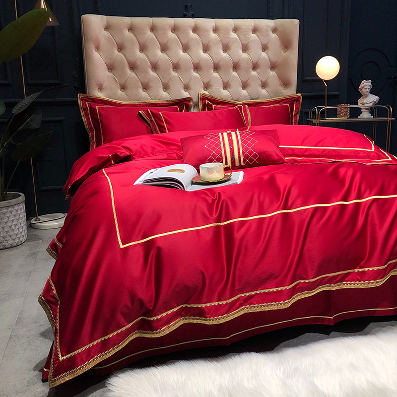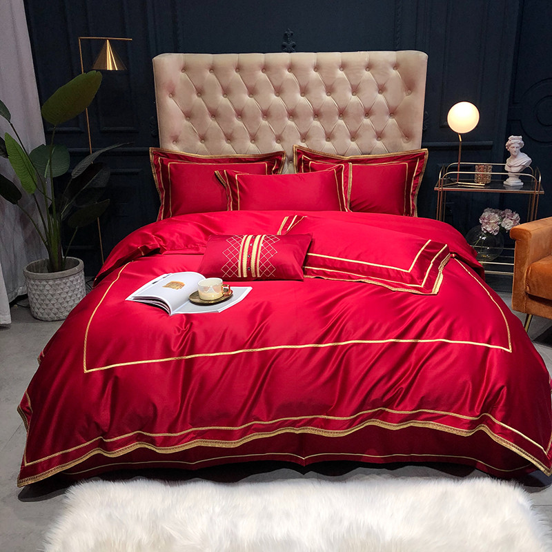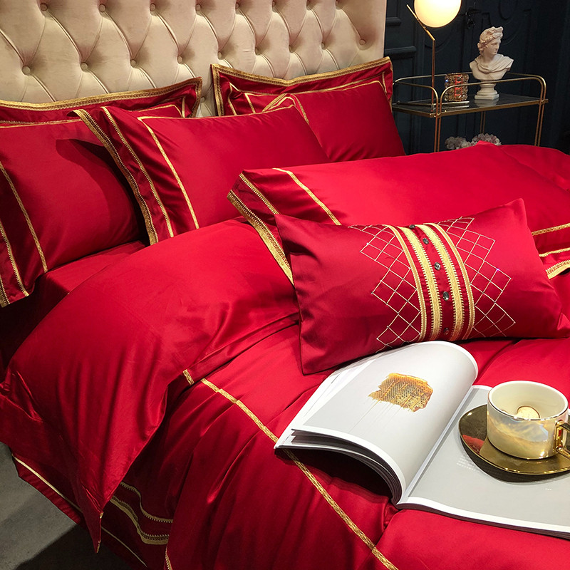 馨蕊 2022新款100支莫兰迪刺绣全棉四件套 温莎红
