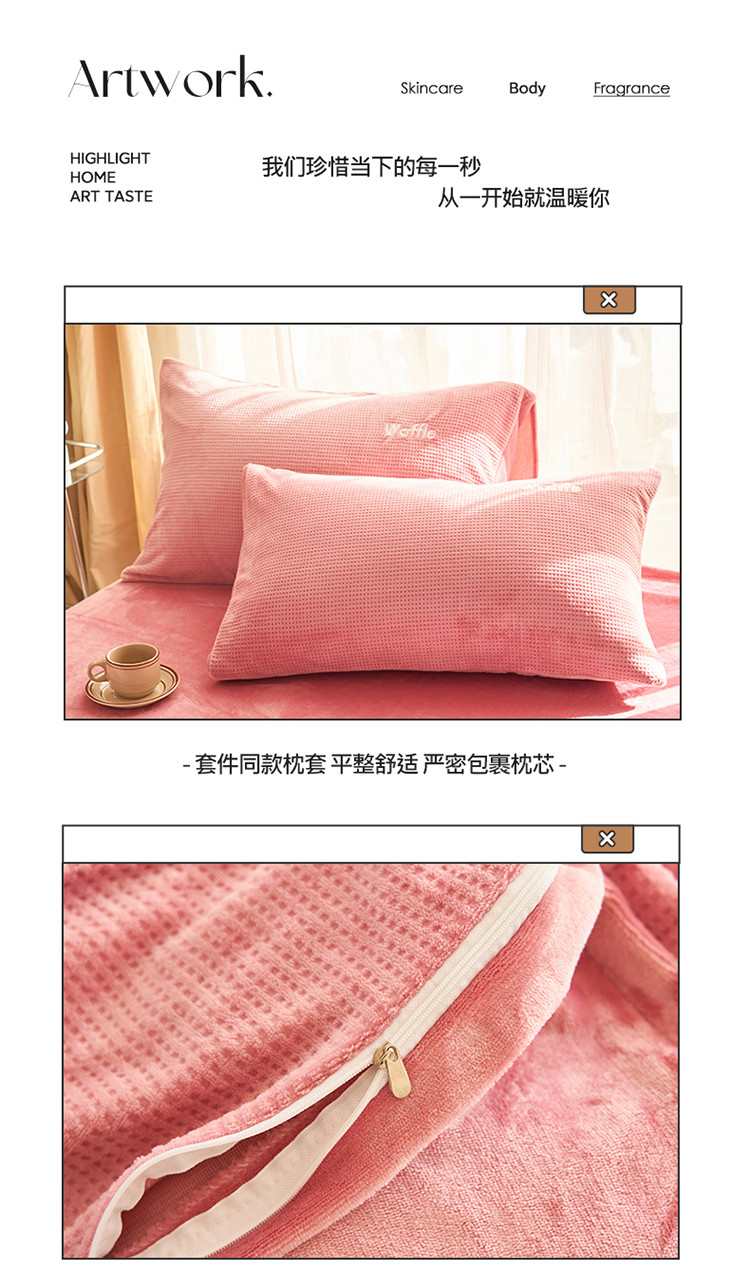 商品名称:晨曦 2022新款华芙绒四件套全消光牛奶绒四件套 满杯甜芋