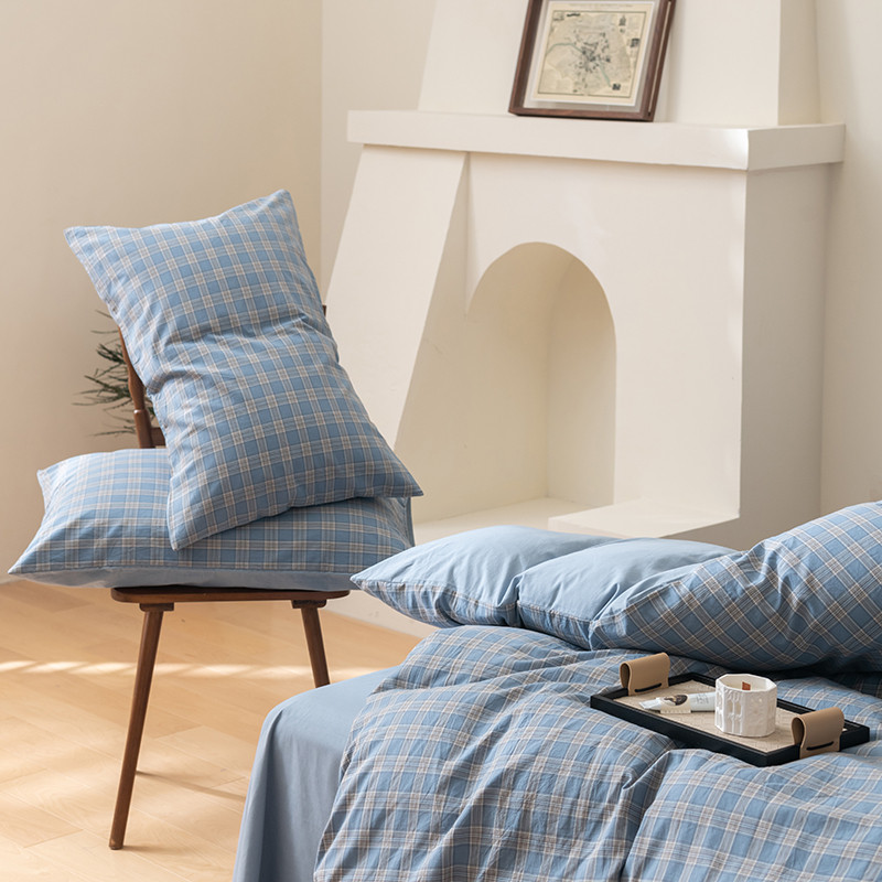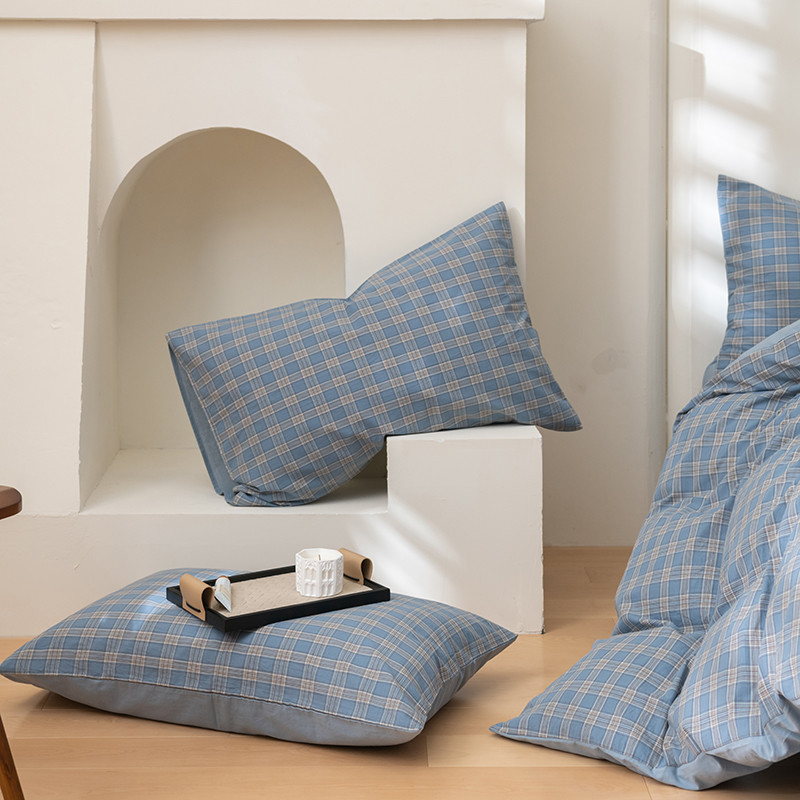 商品名称:柠馨 2023新款全棉色织水洗棉单品枕套 海盐蓝