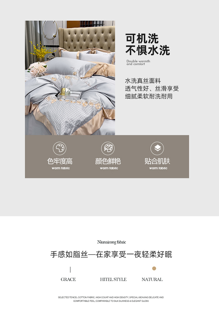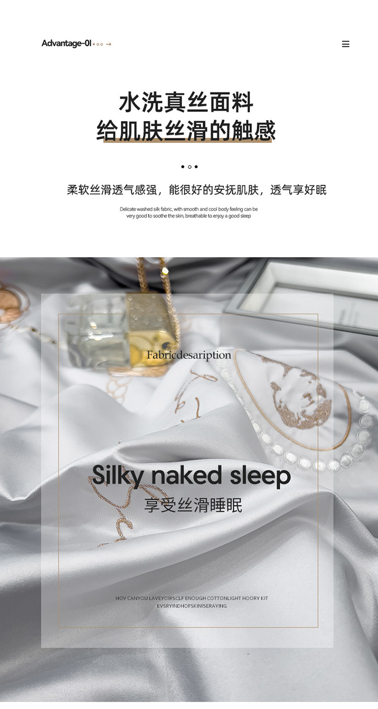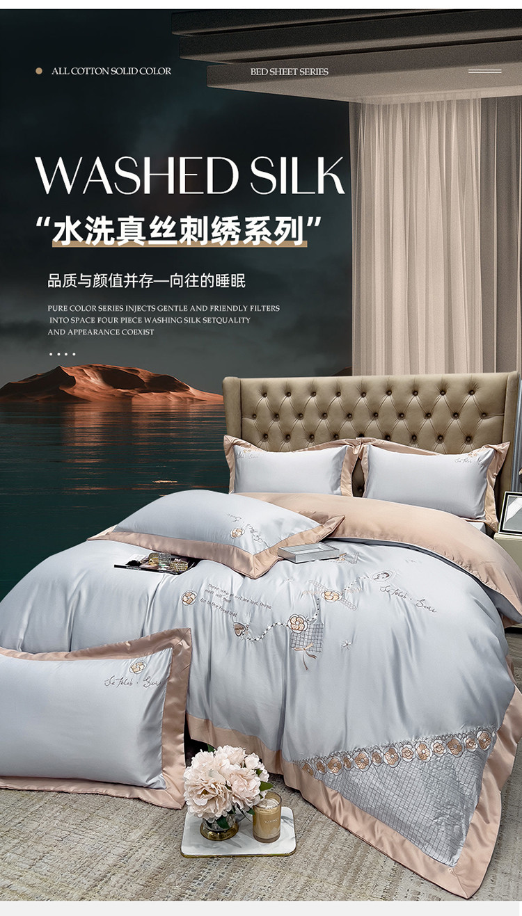 商品名称:绒世界 2024新款水洗真丝莱娅系列四件套 莱娅-山灰