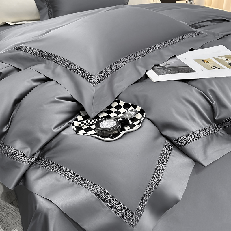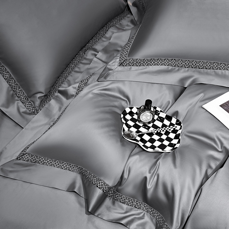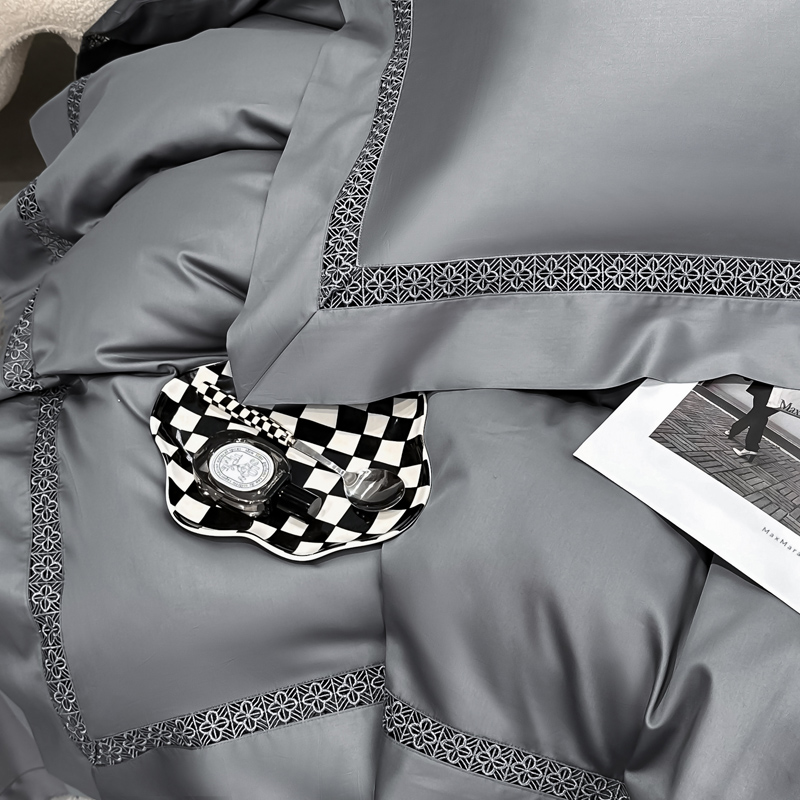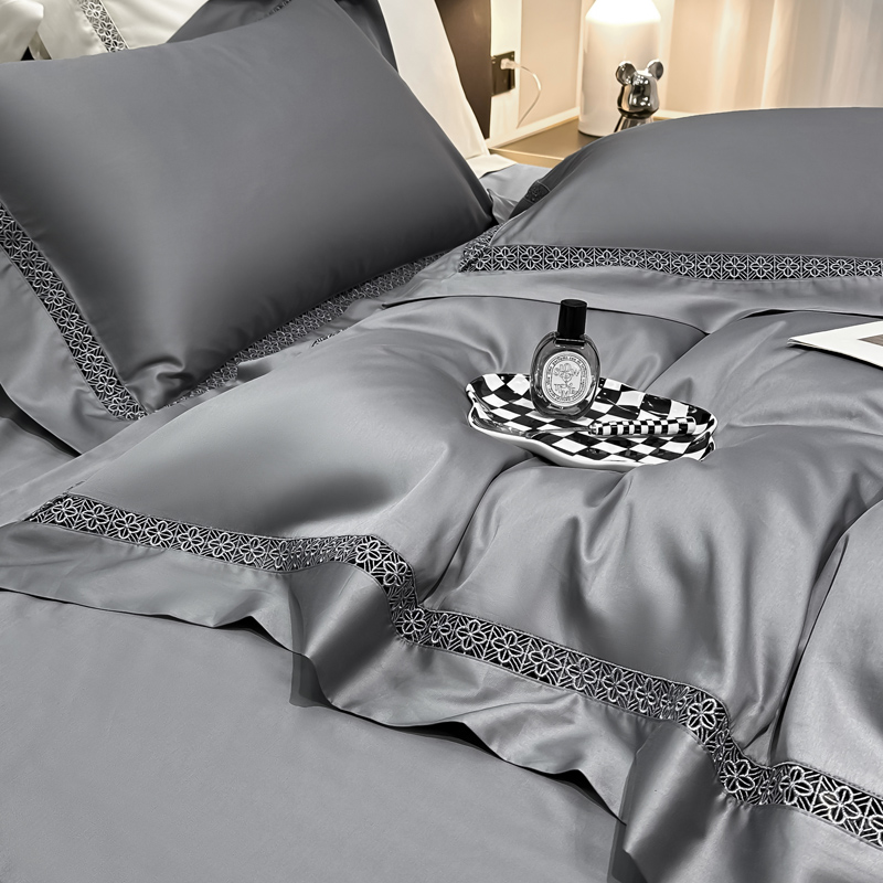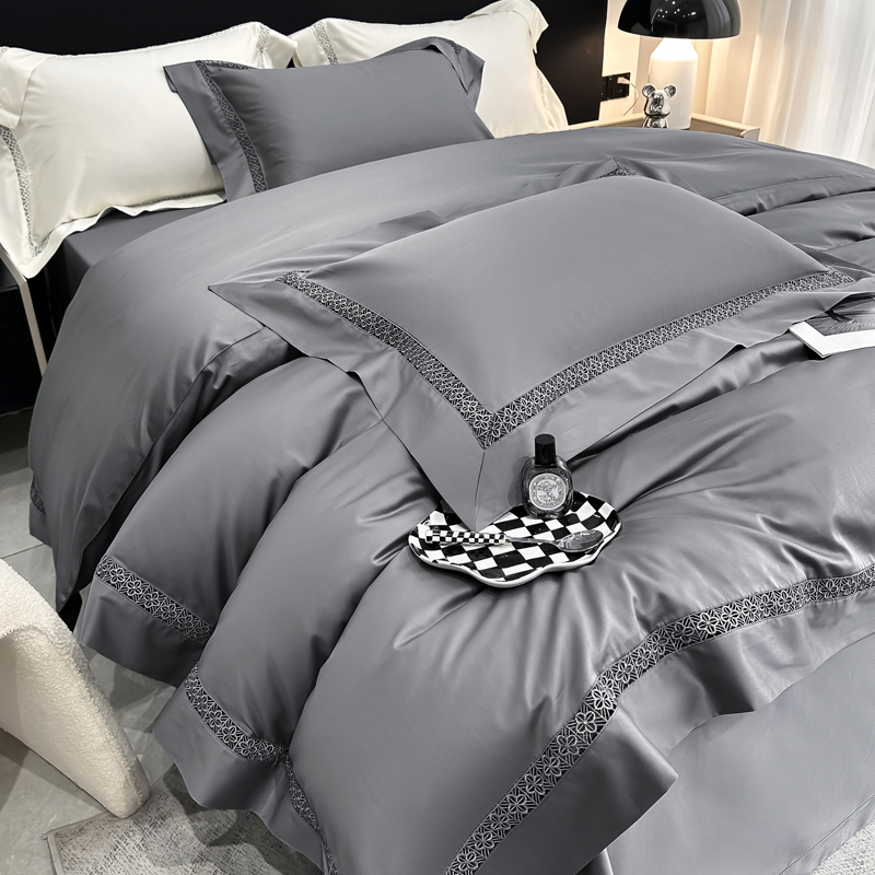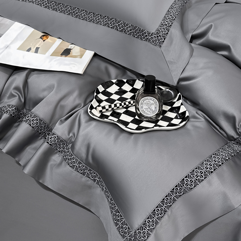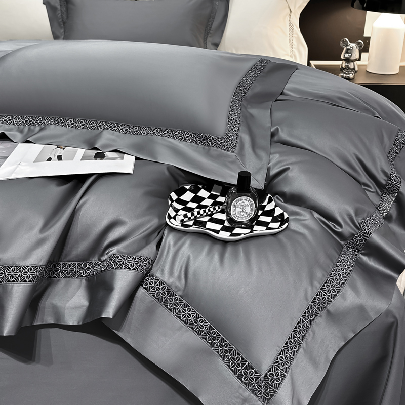 若未 2023新款50支长绒棉镂空轻奢四件套-奢梵克 山灰色