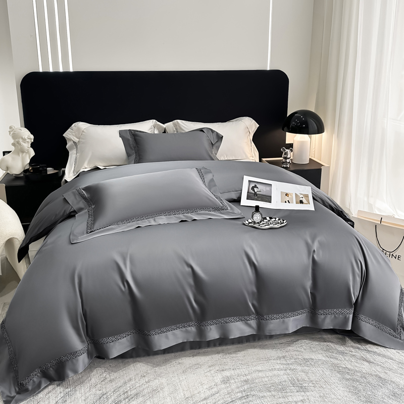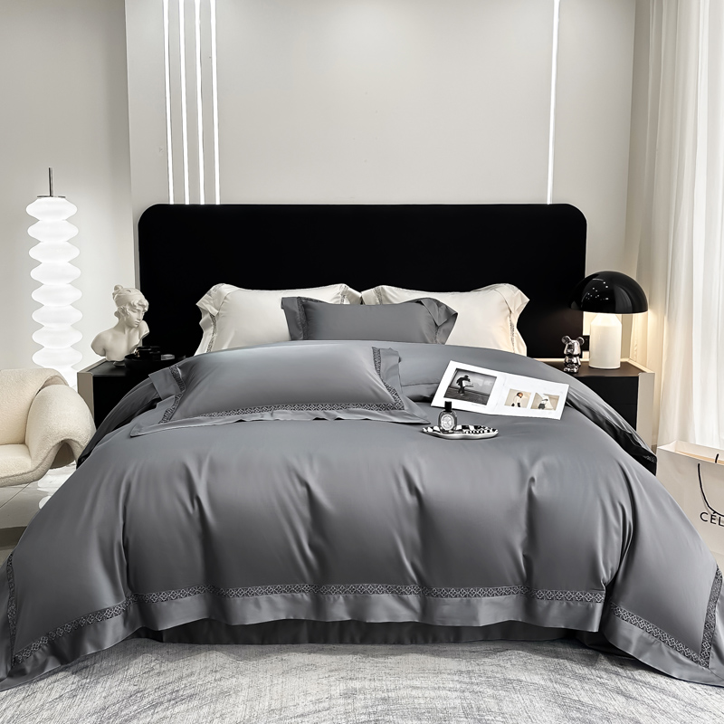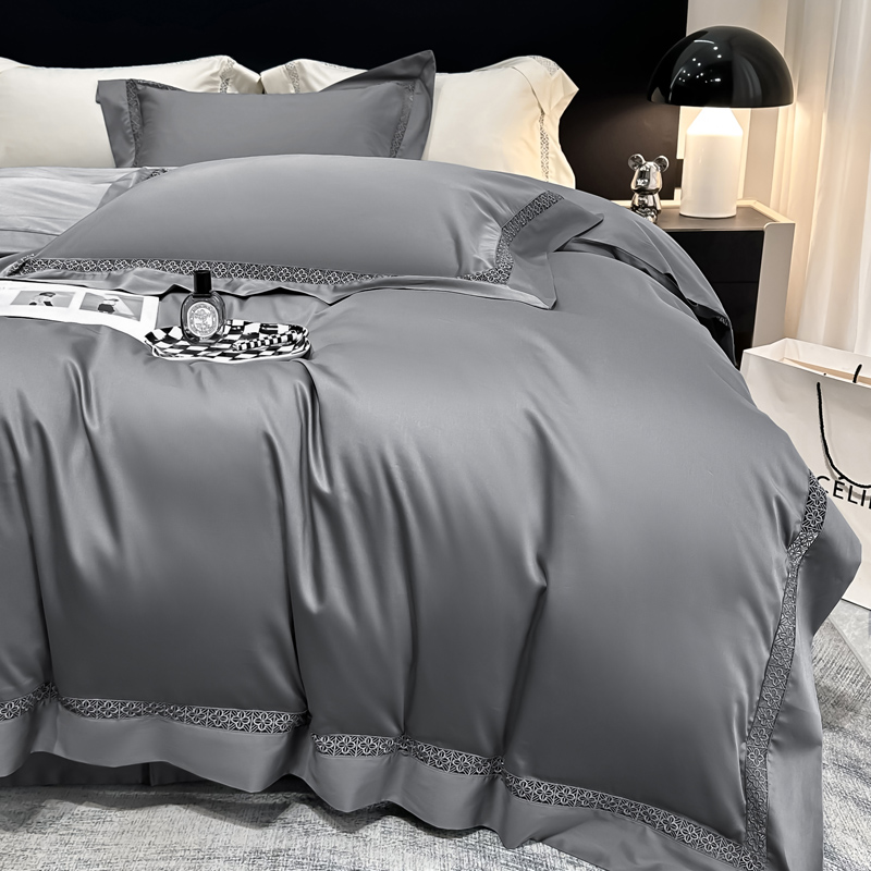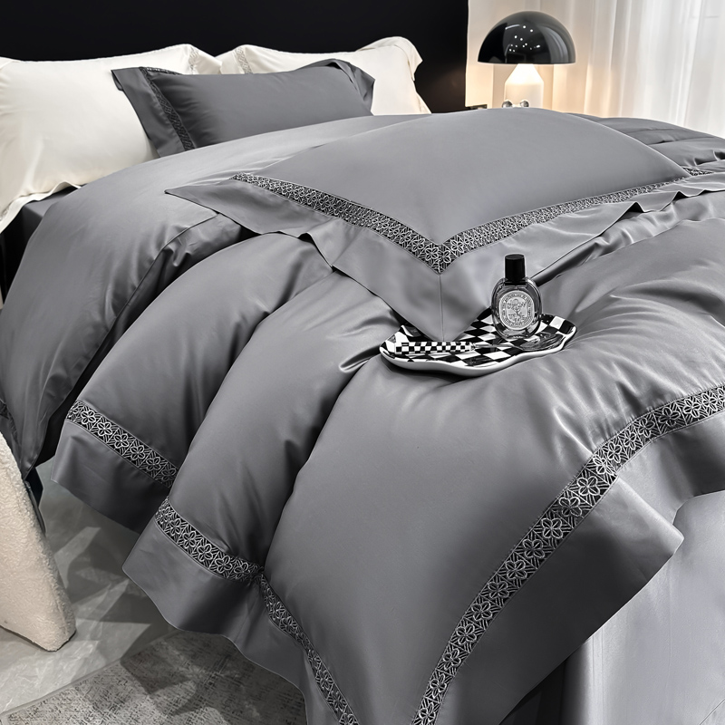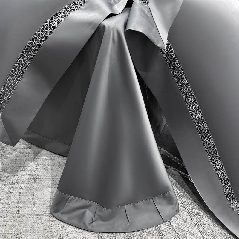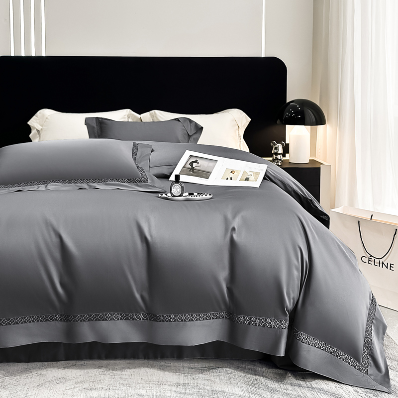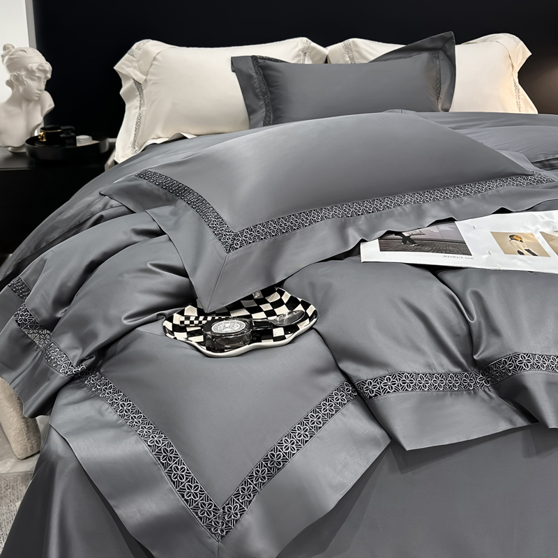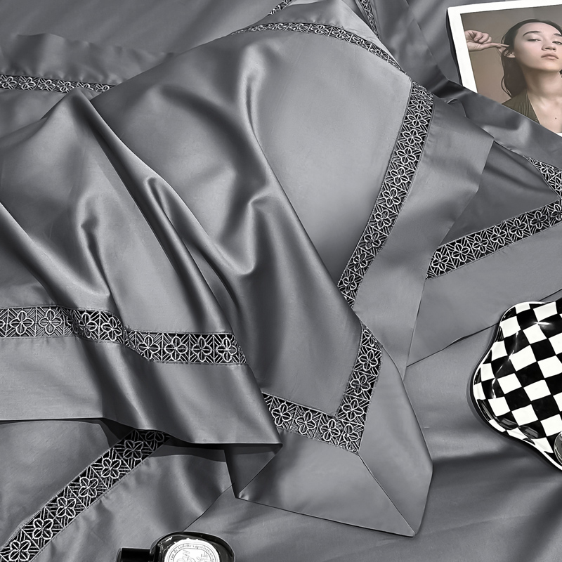若未 2023新款50支长绒棉镂空轻奢四件套-奢梵克 山灰色