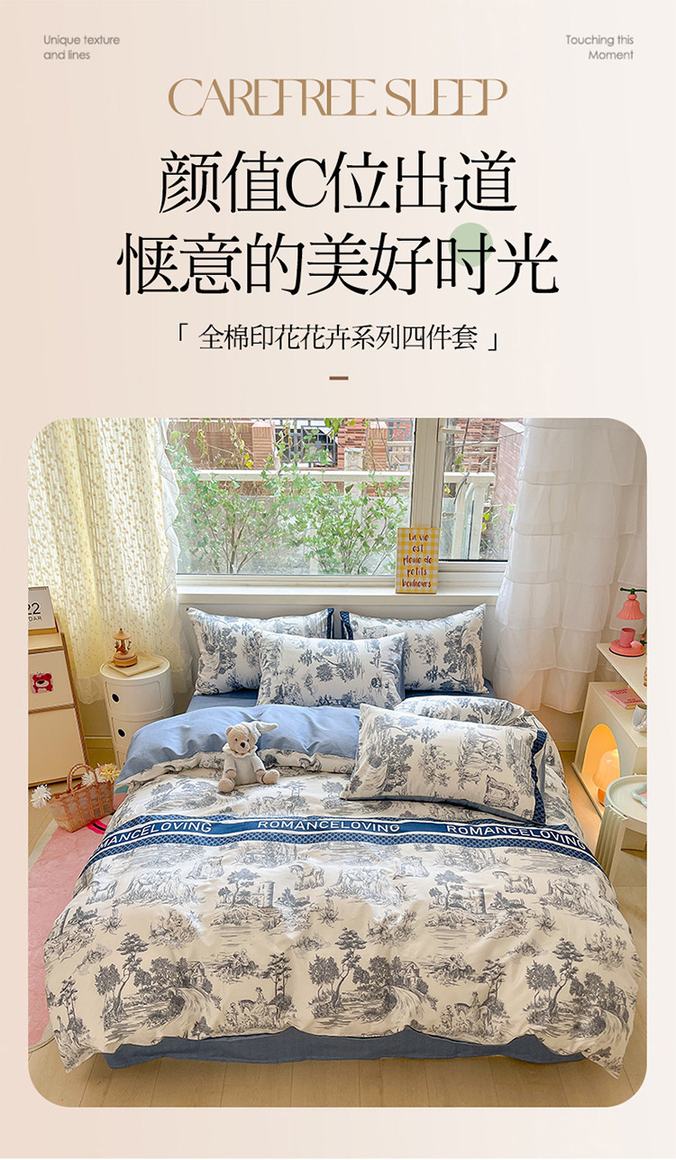 蓝邻 2023新款全棉印花花卉系列四件套 爱丽丝