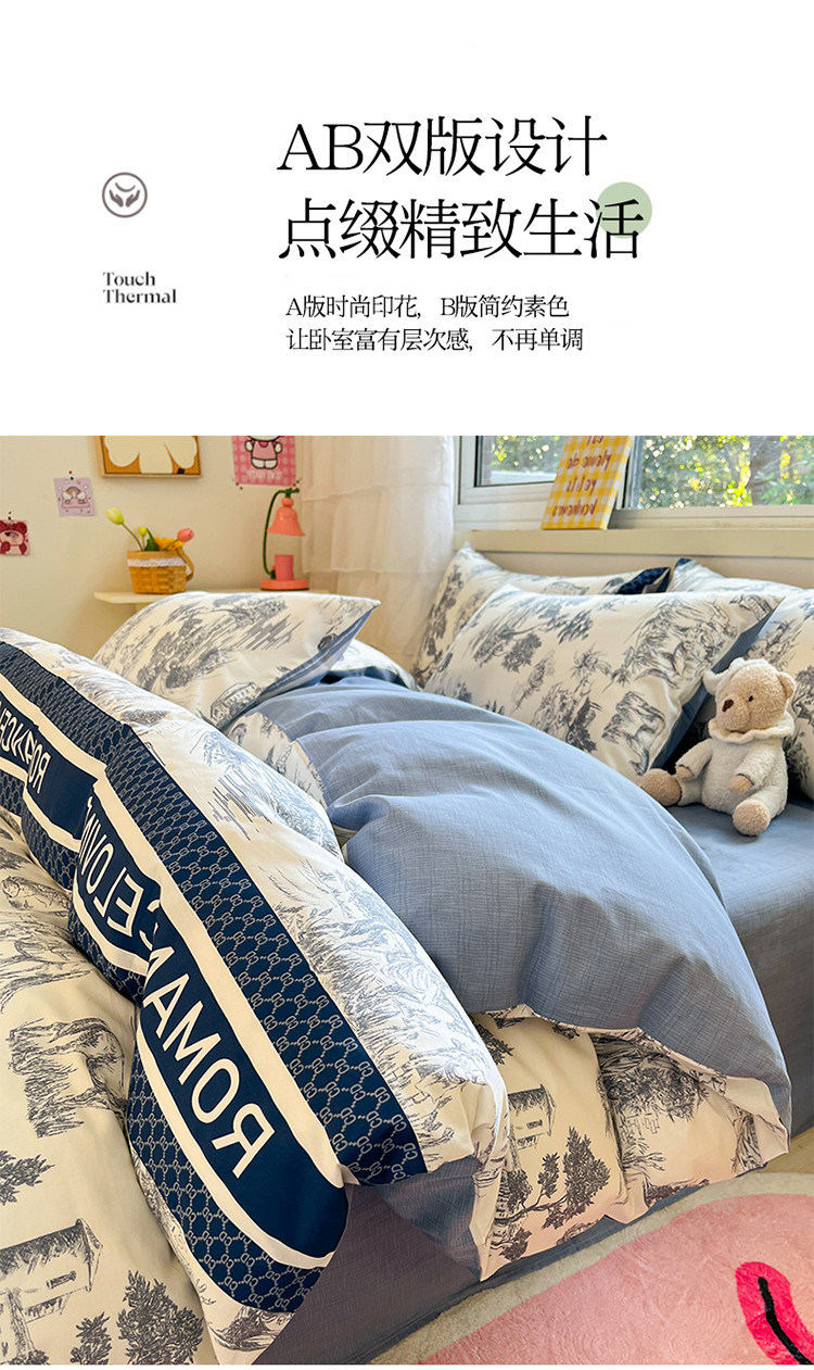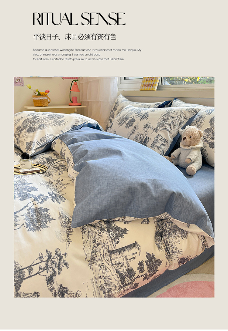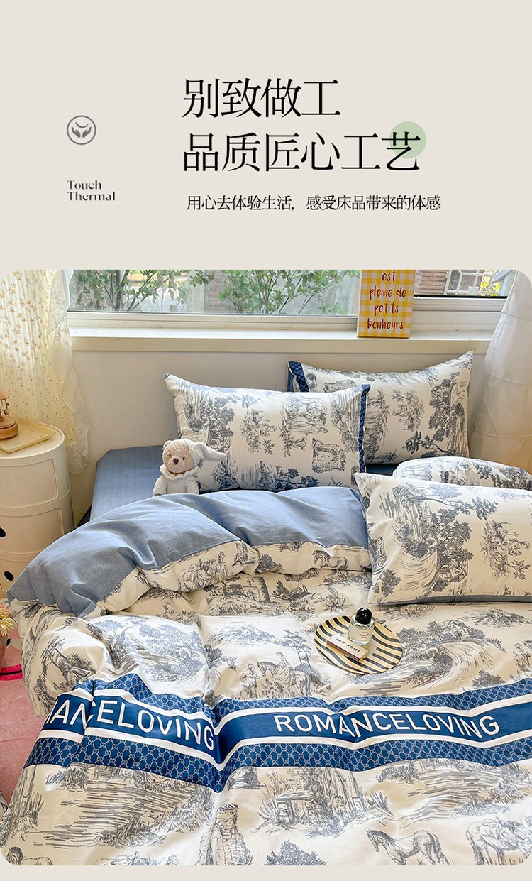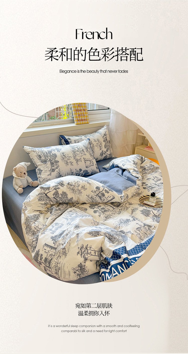 (总)蓝邻家纺 2024新款小清新印花全棉四件套学生宿舍三件套,茶园兔,风翩,机灵兔熊,可妮露,藤蔓兔,筱薇