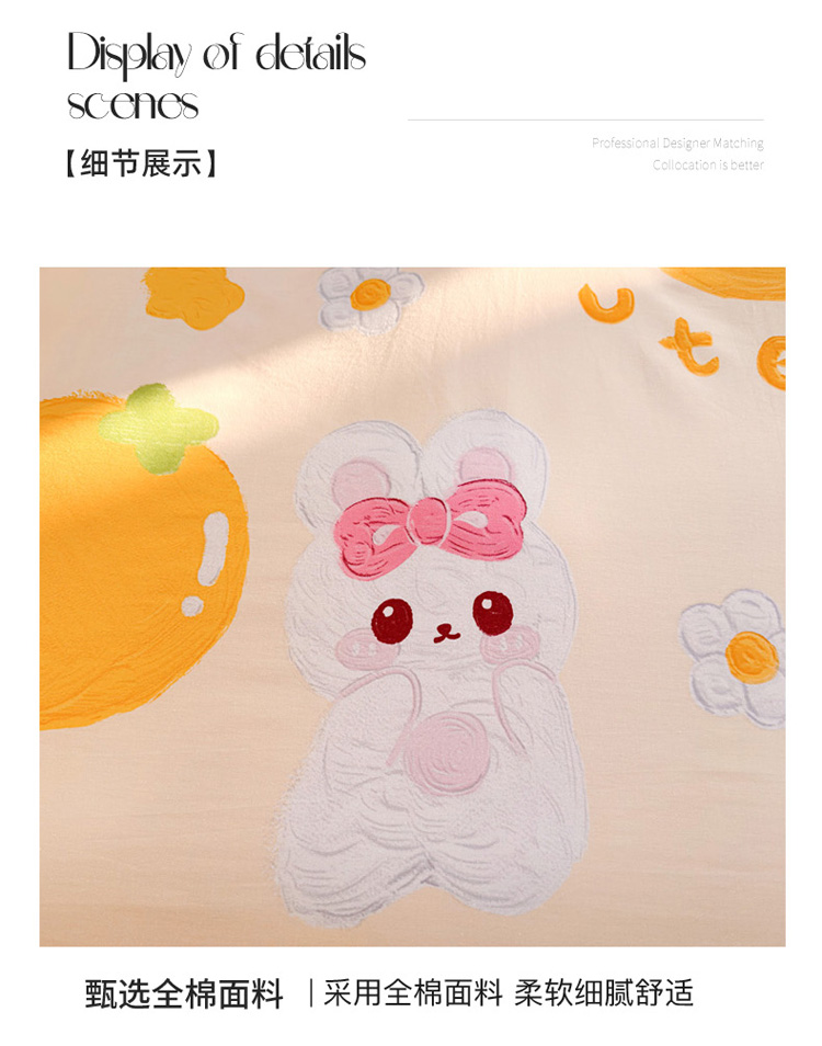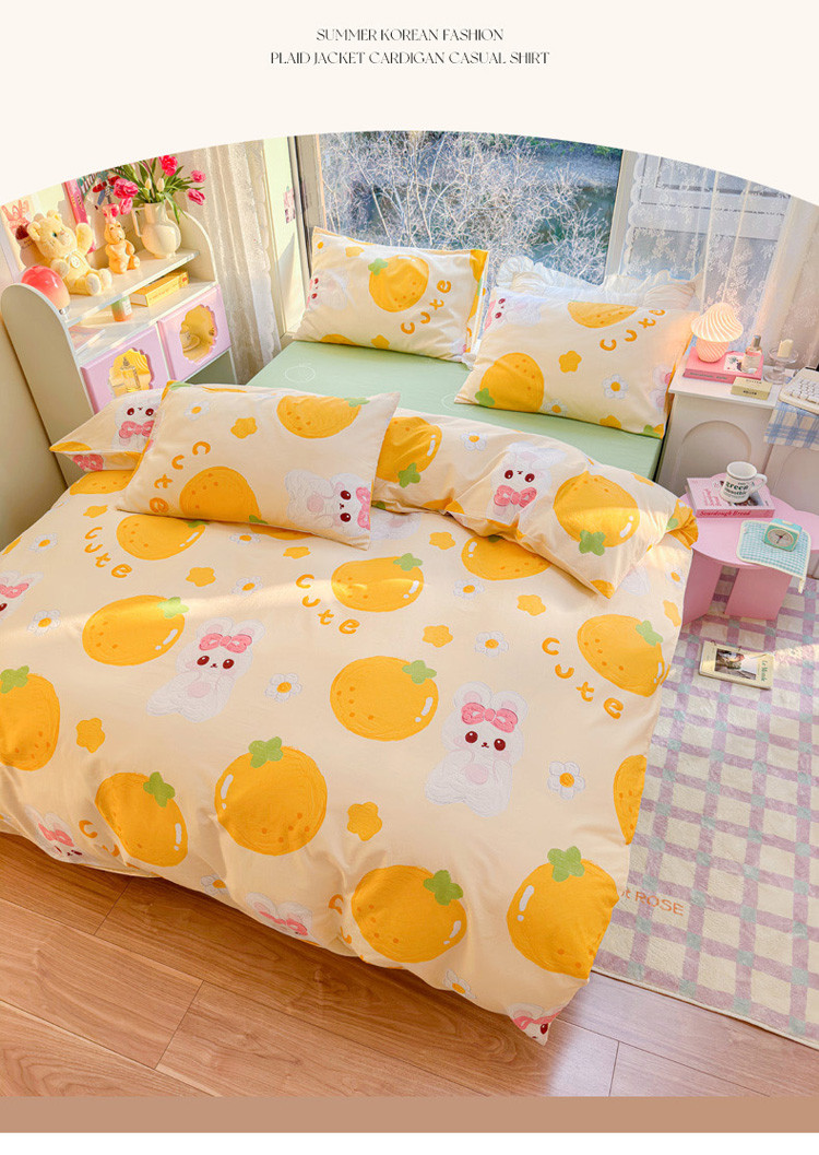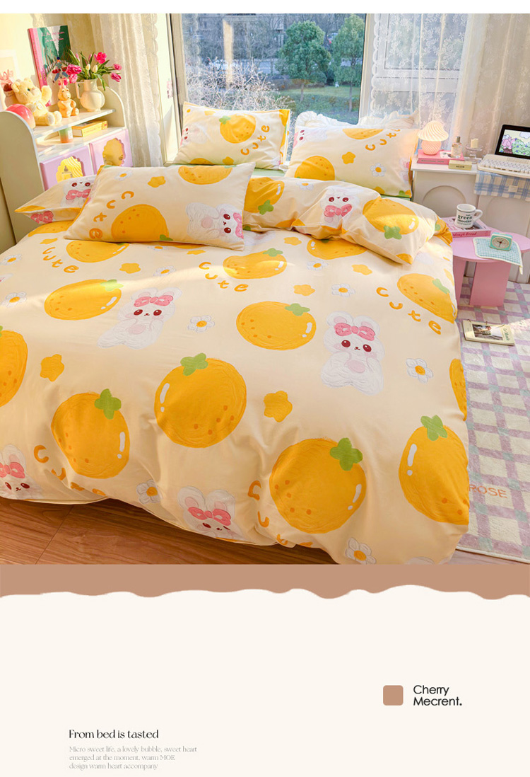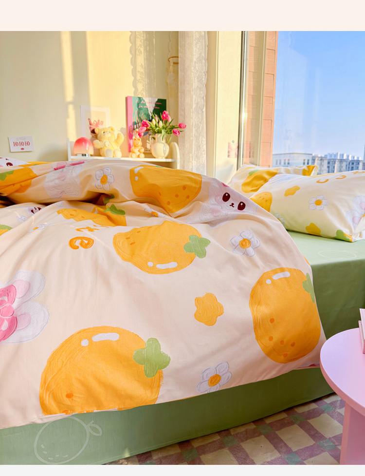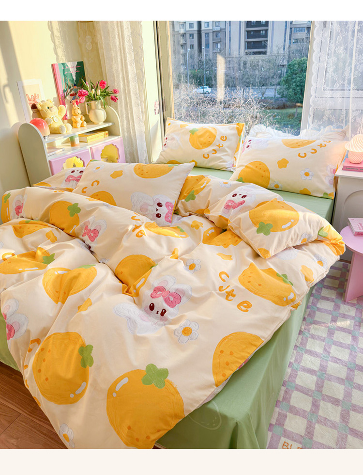 商品名称:花伞 2023直播新款40支高密全棉纯棉小清新四件套 橙子和兔