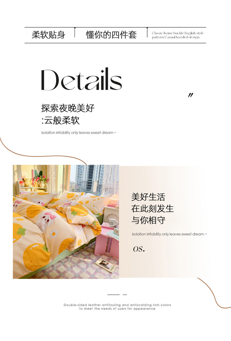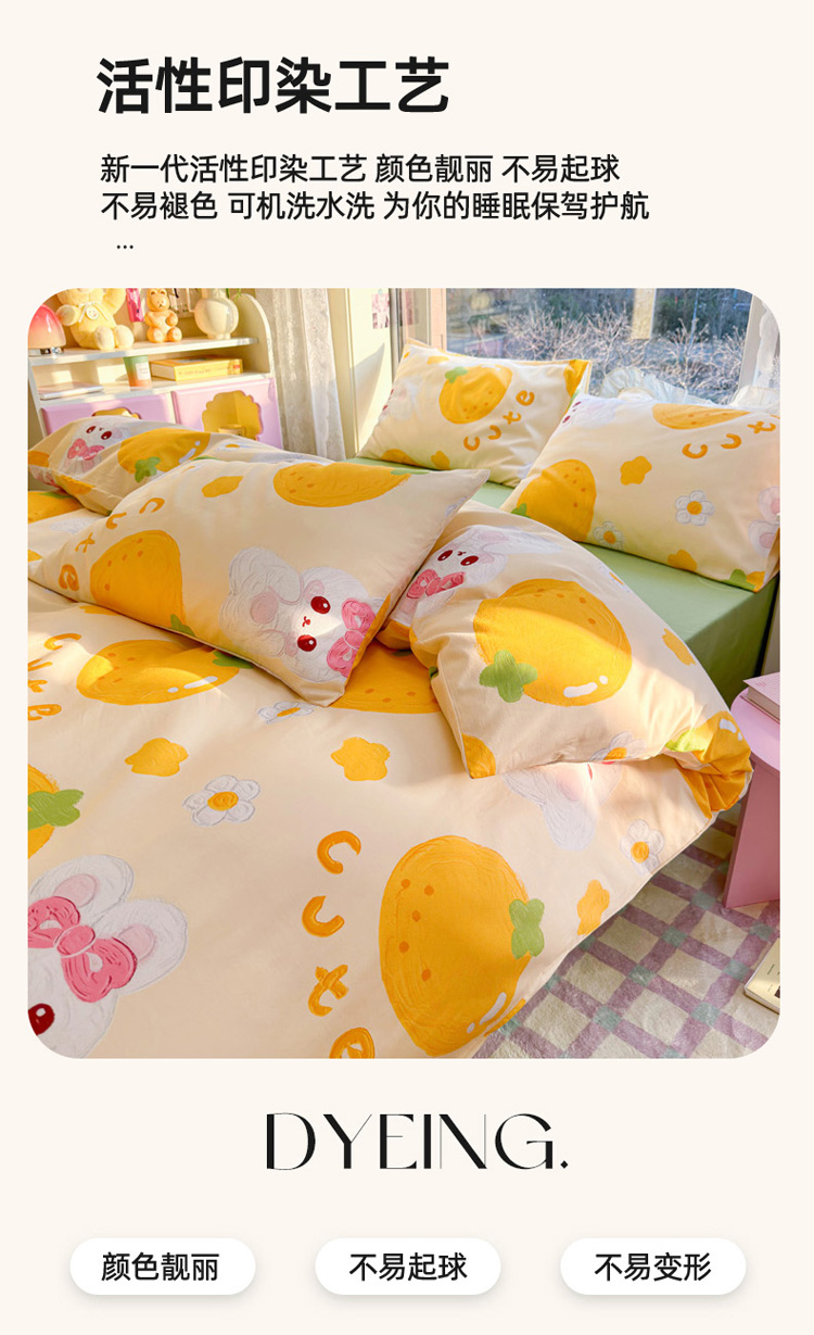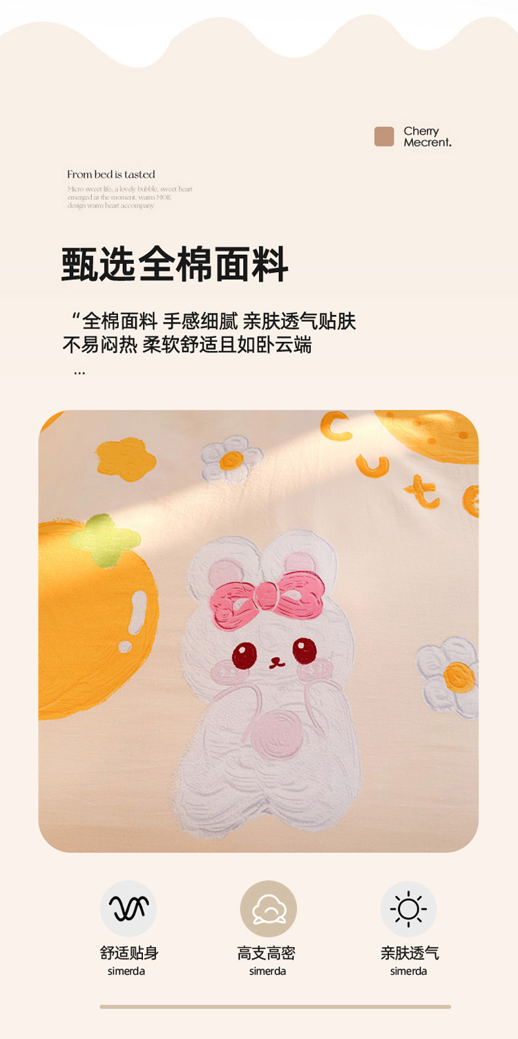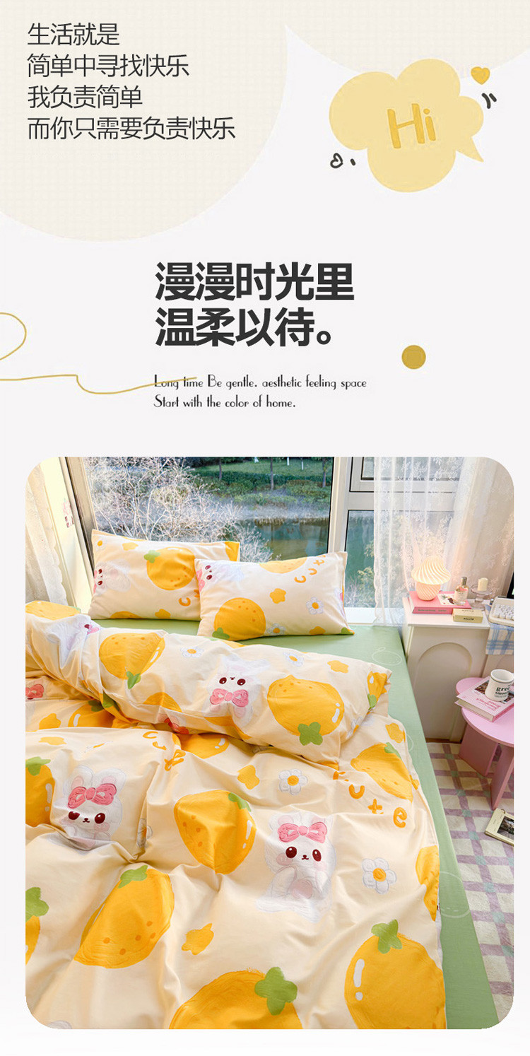 商品名称:花伞 2023直播新款40支高密全棉纯棉小清新四件套 橙子和兔