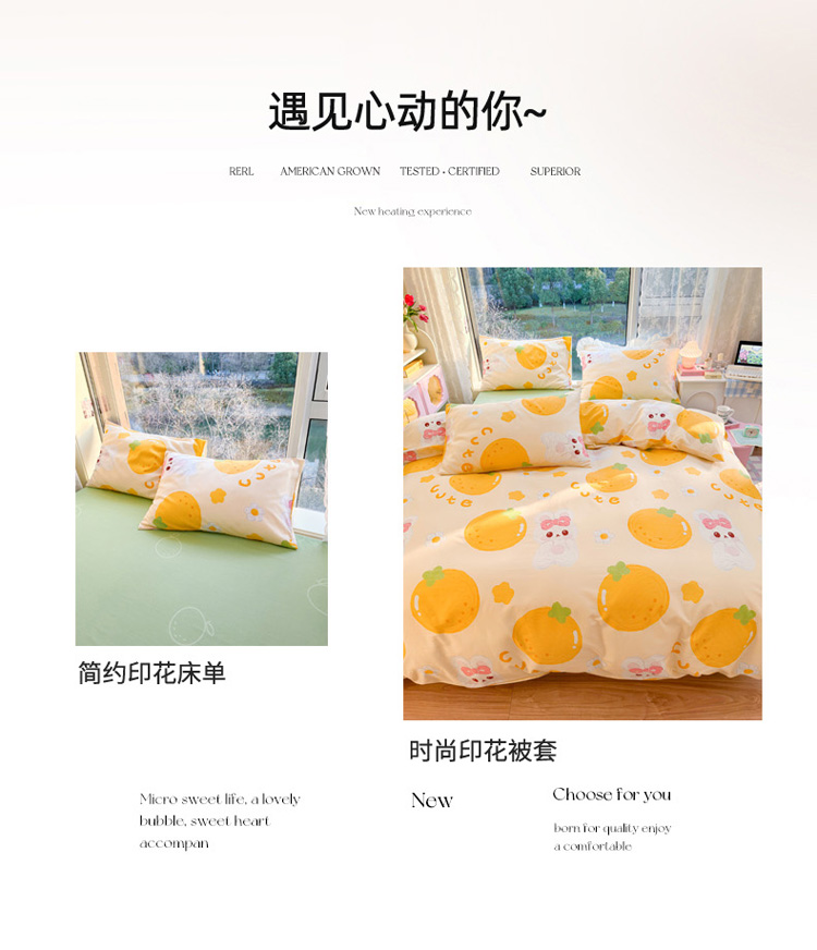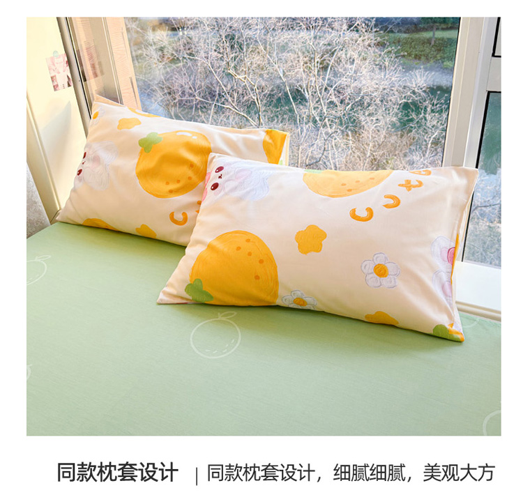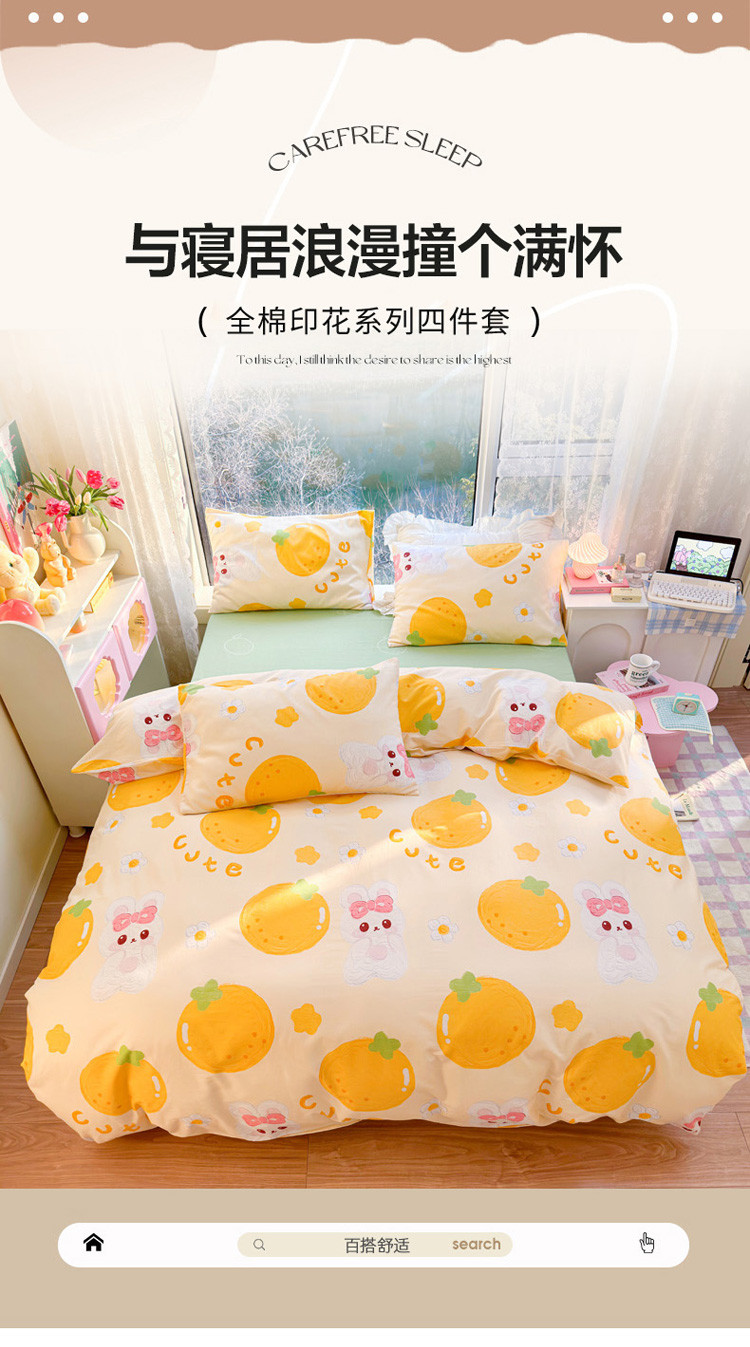 花伞 2023直播新款40支高密全棉纯棉小清新四件套 橙子和兔