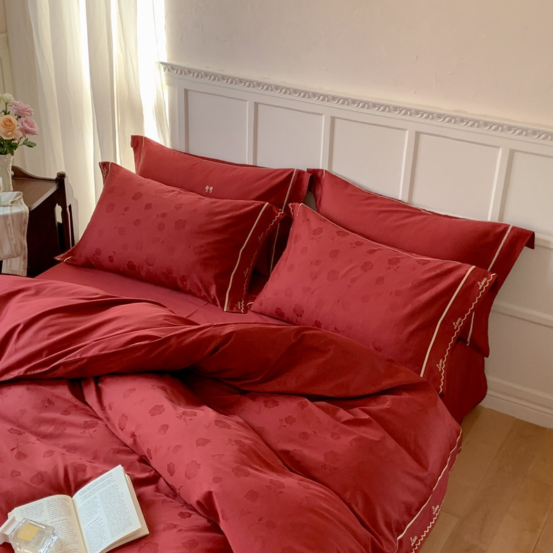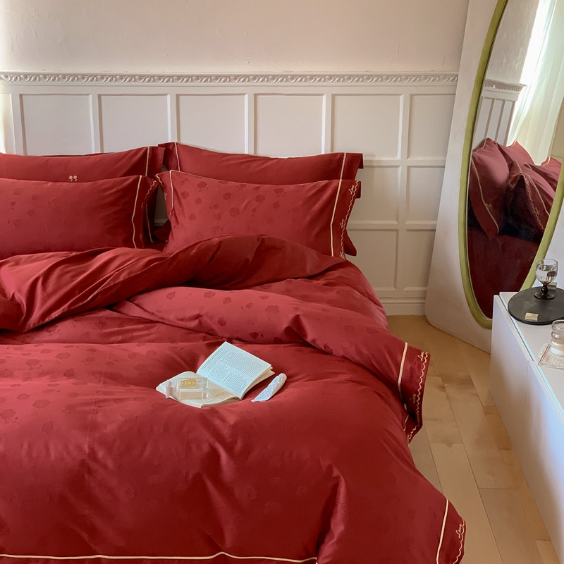 商品名称:优然居 2023新款100支长绒棉贡缎提花刺绣系列 西西里红