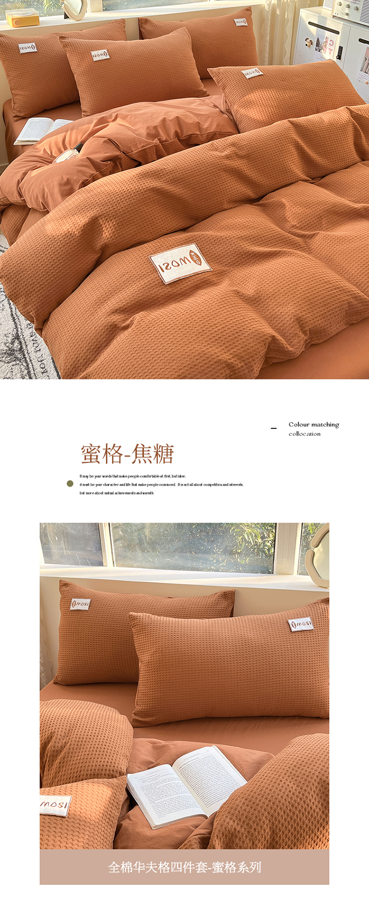 商品名称:蓝巢2023新款A版60支全棉华夫格B版40支全棉水洗棉四件套蜜格系列 蜜格-焦糖