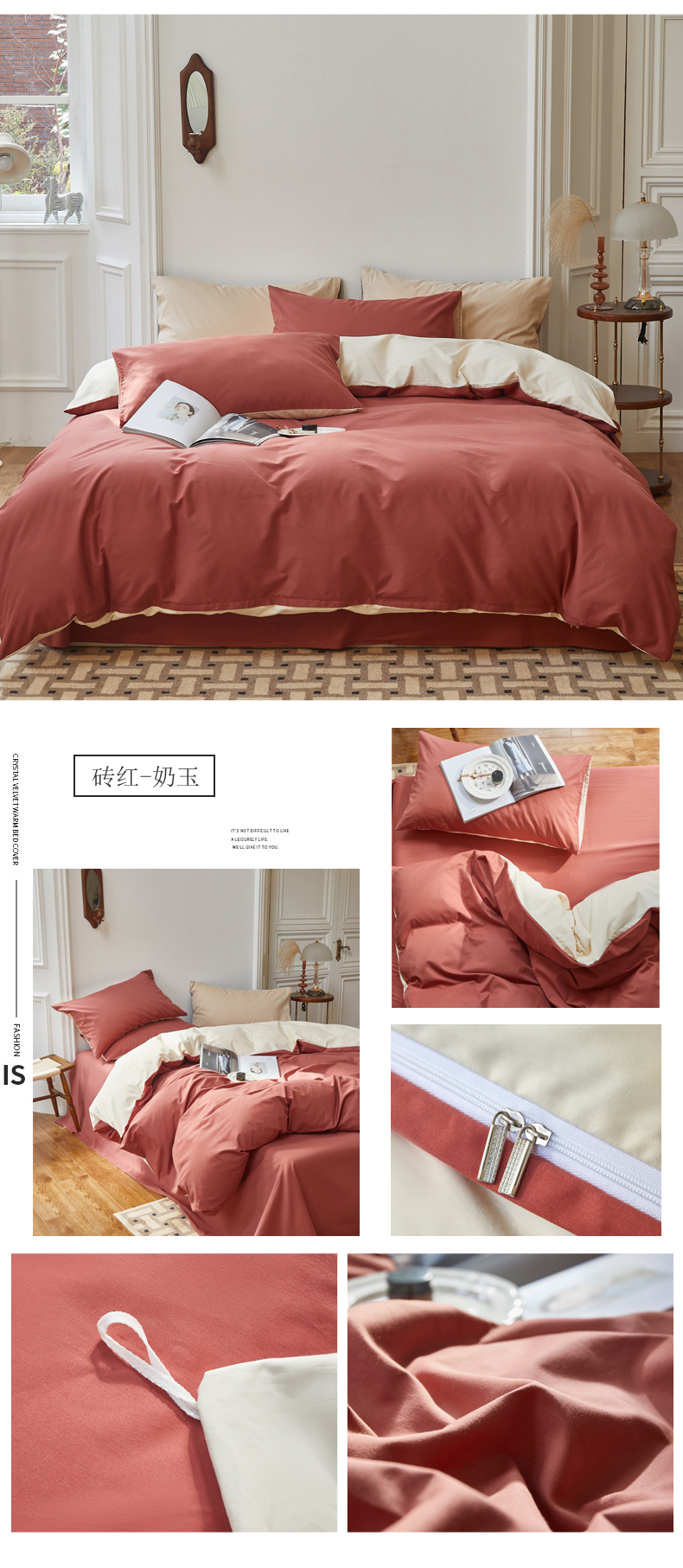 商品名称:怡家居 2023新款全棉100支磨毛四件套 砖红-奶玉