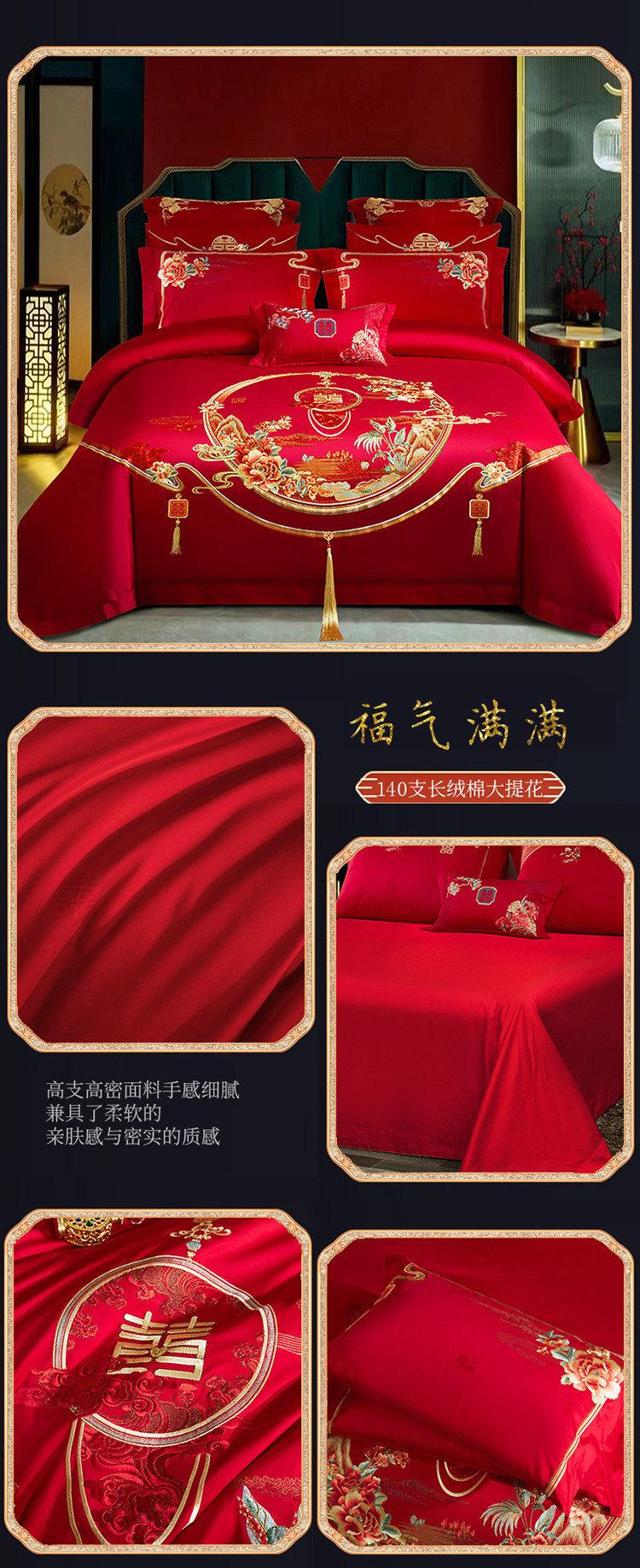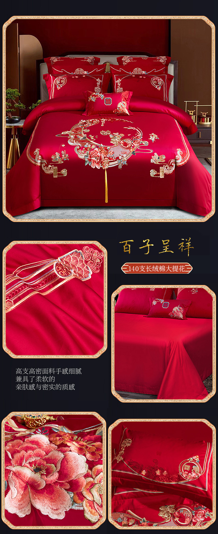 (总)蒂爵 全棉纯棉长绒棉大绣花婚庆四件套,百喜纳福,百子添福,多子多福,锦绣良缘,龙凤添喜,盛世花开