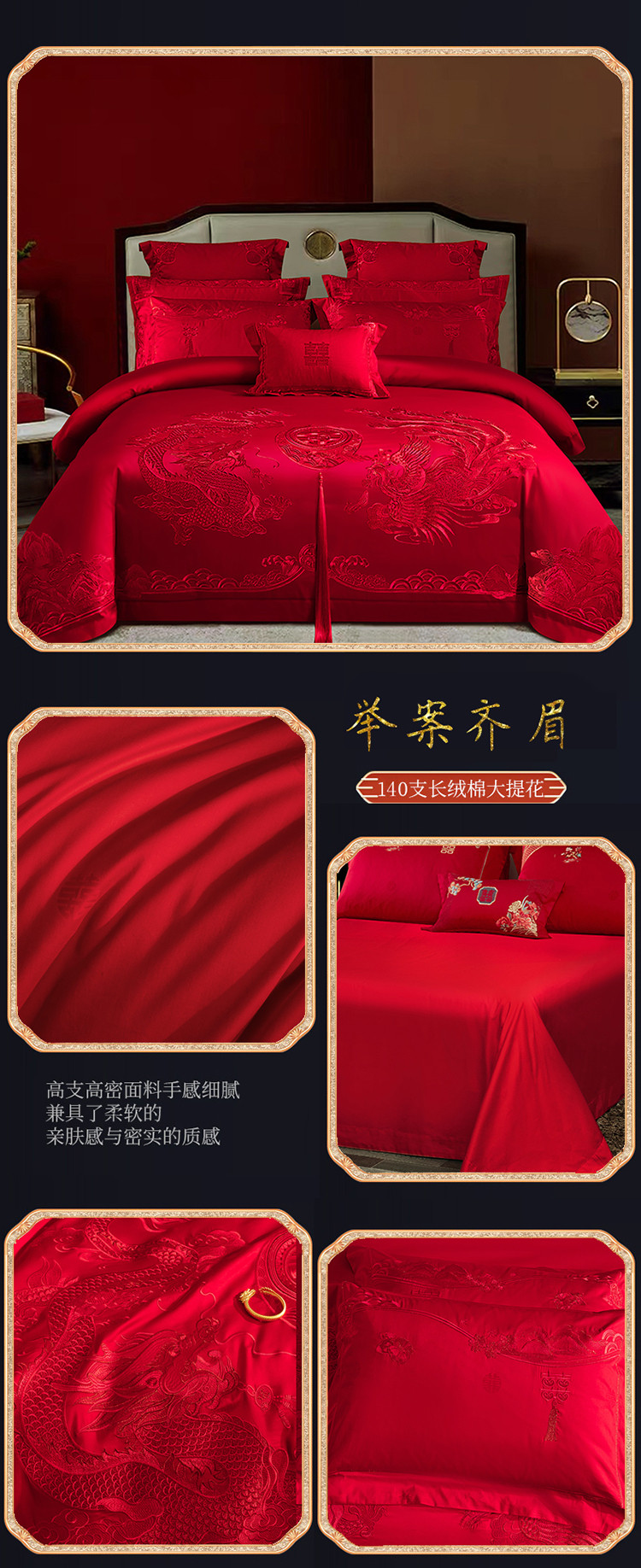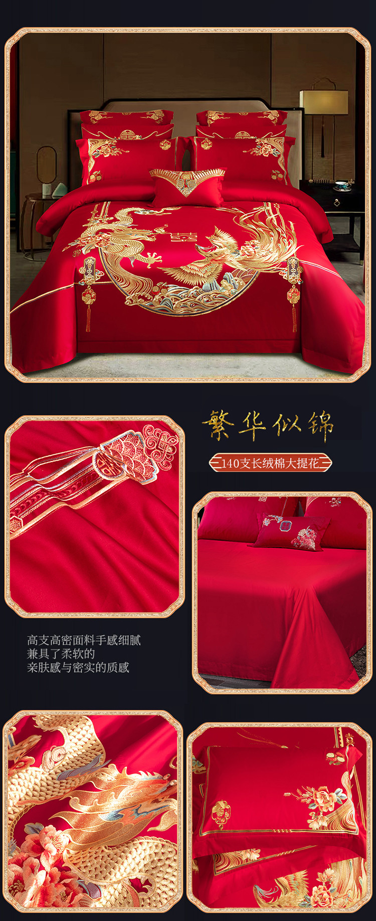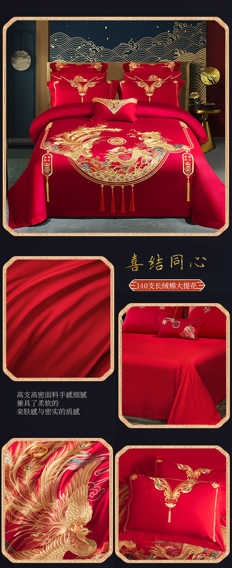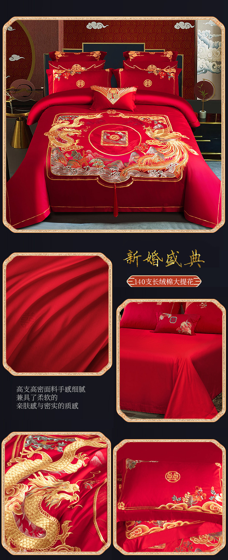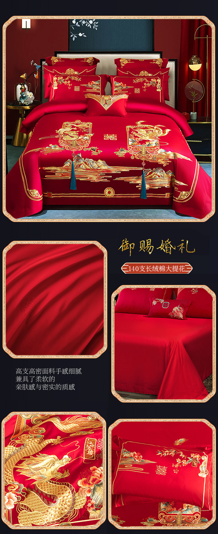 (总)蒂爵 全棉纯棉提花顶奢重工绣花工艺款婚庆四件套多件套,龙凤传奇,禧龙禧凤,缘定江山,挚爱一生