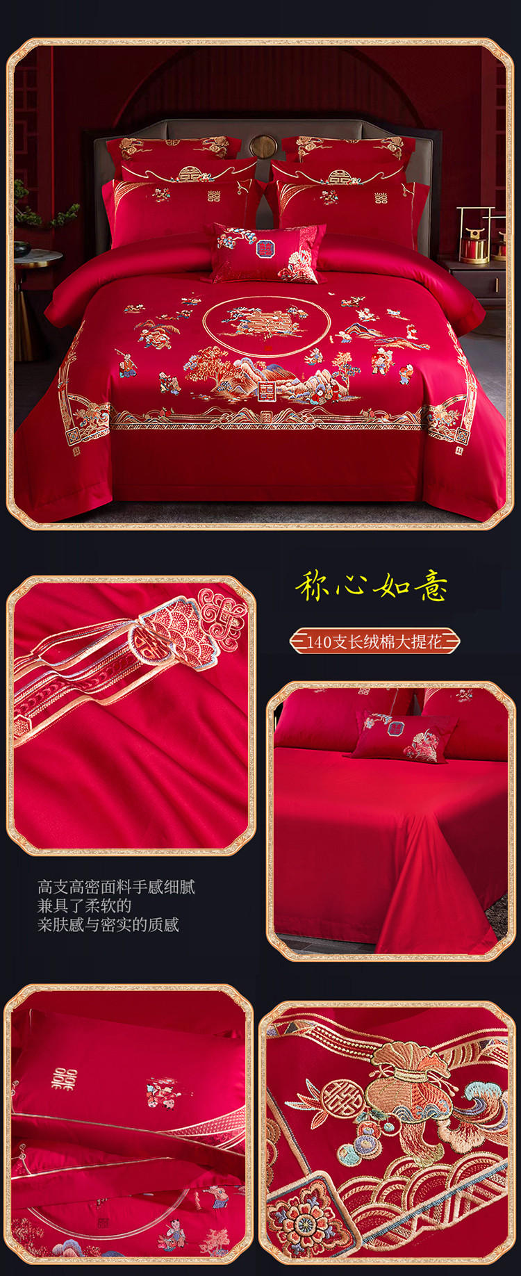 商品名称:(汇总)全棉纯棉传统中式精美刺绣工艺婚庆四件套
