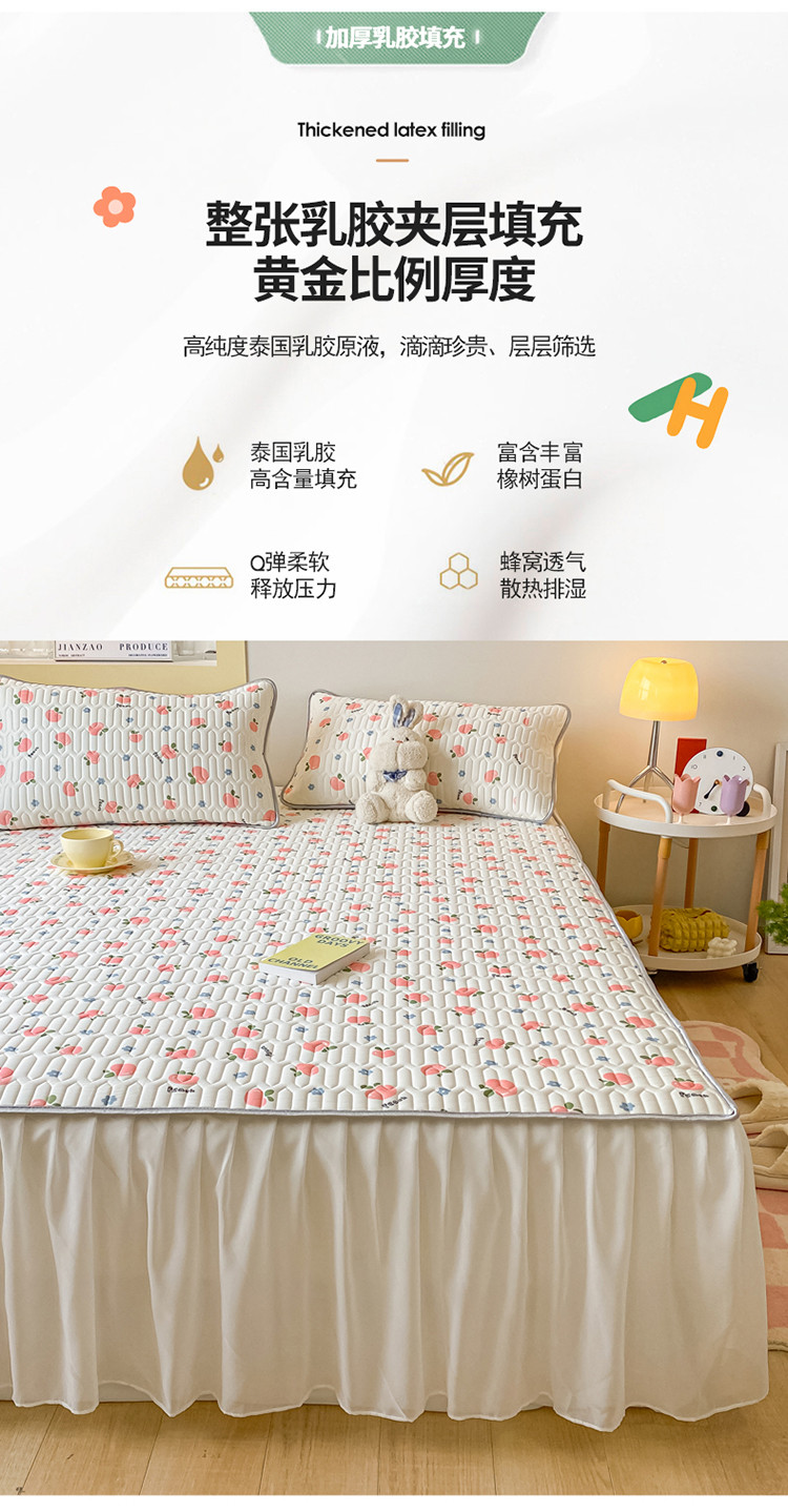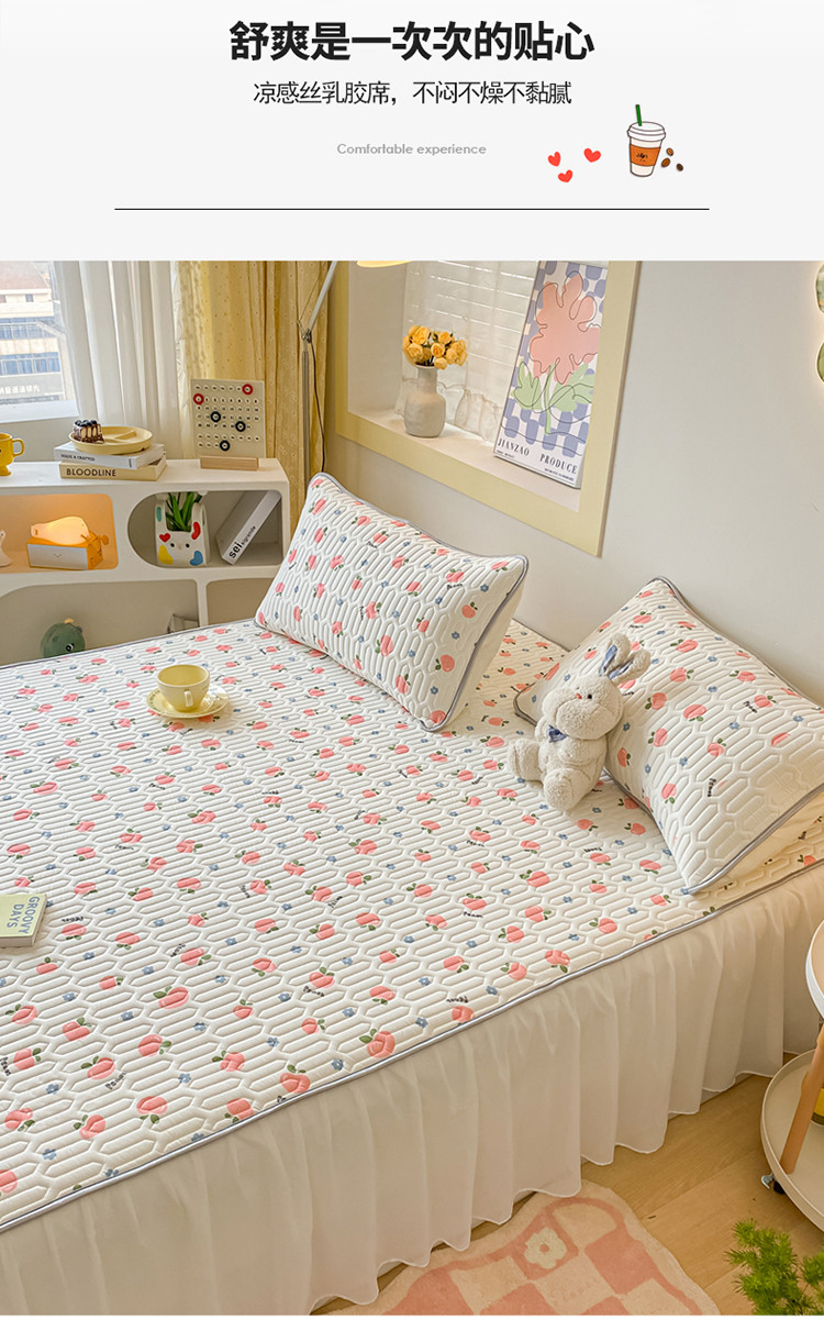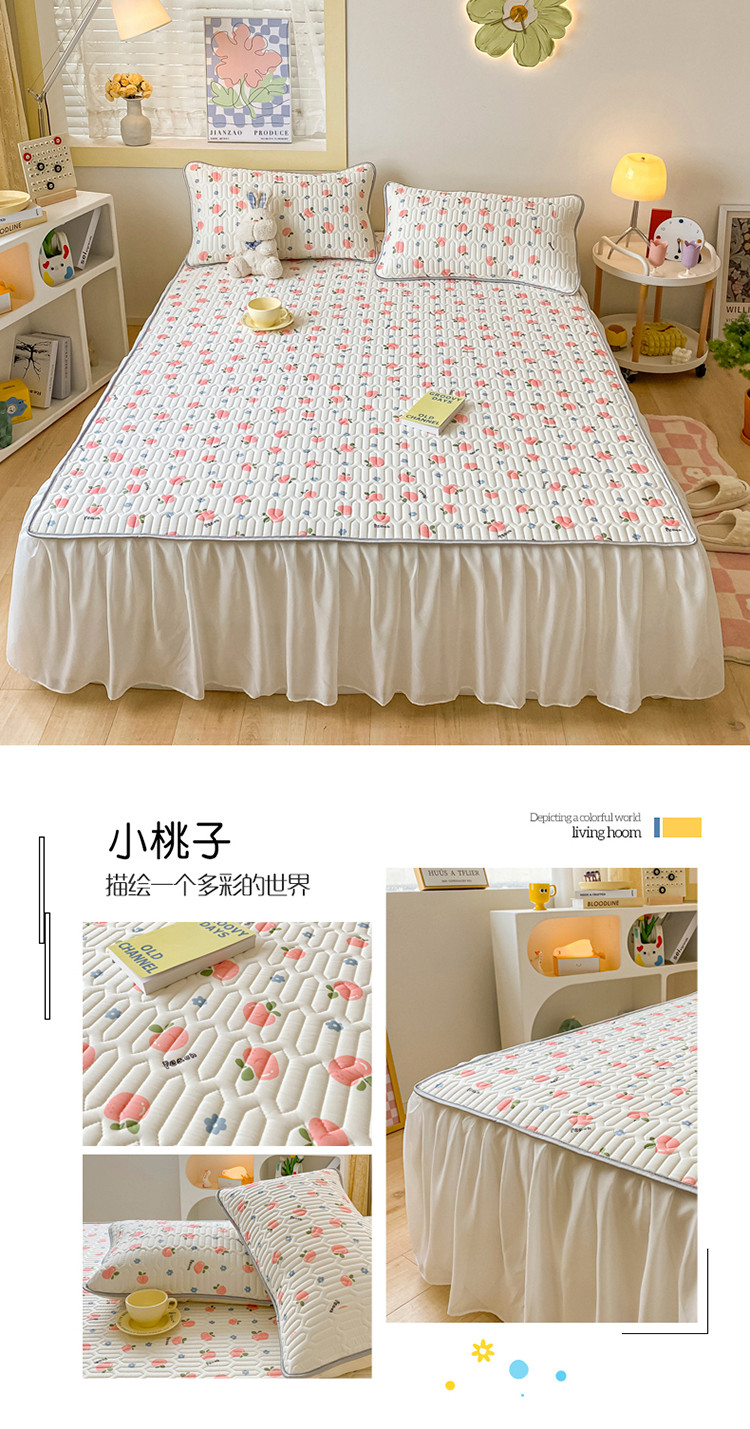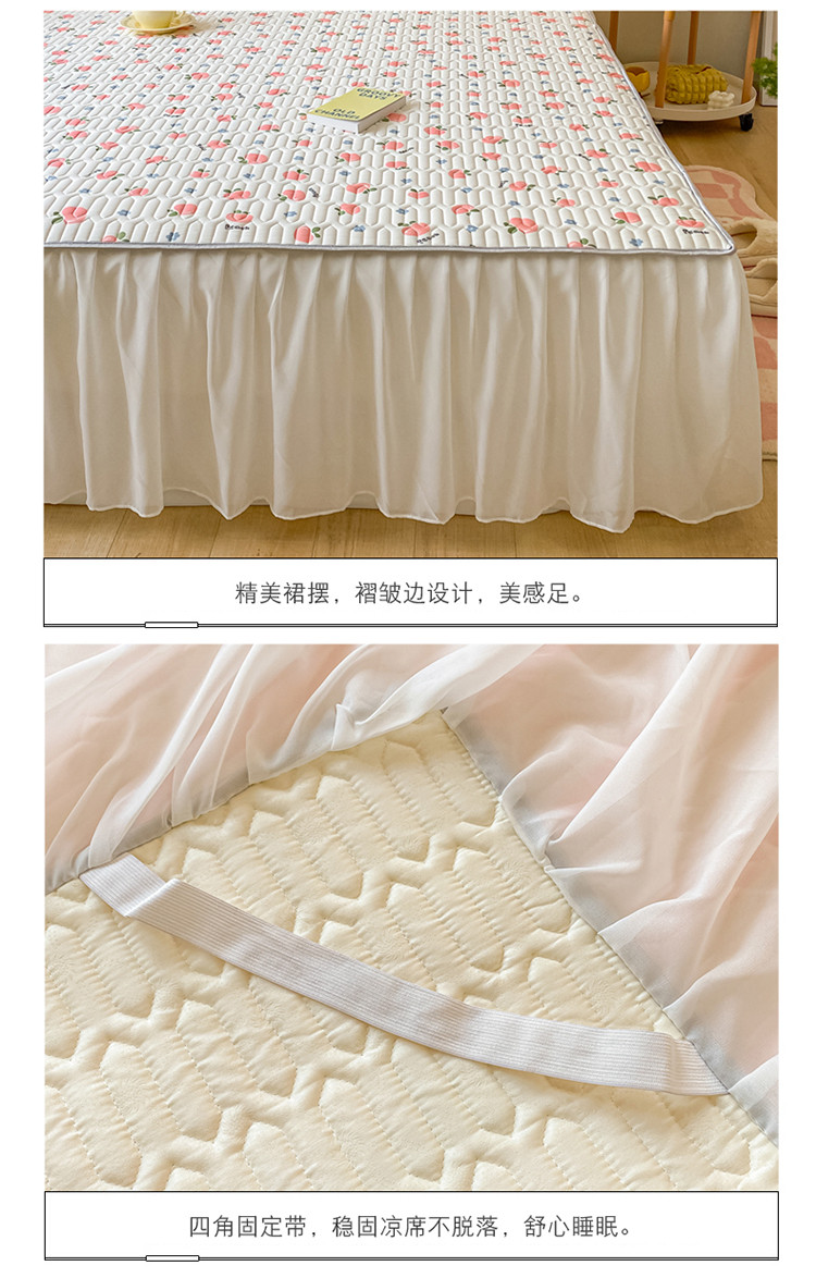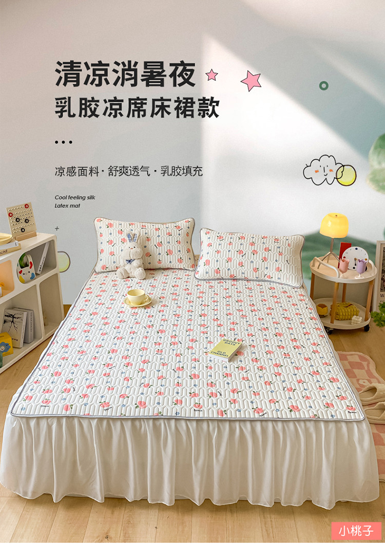 商品名称:金爱家 2023新款凉感丝乳胶软凉席床裙款三件套 小桃子