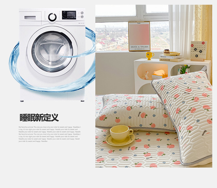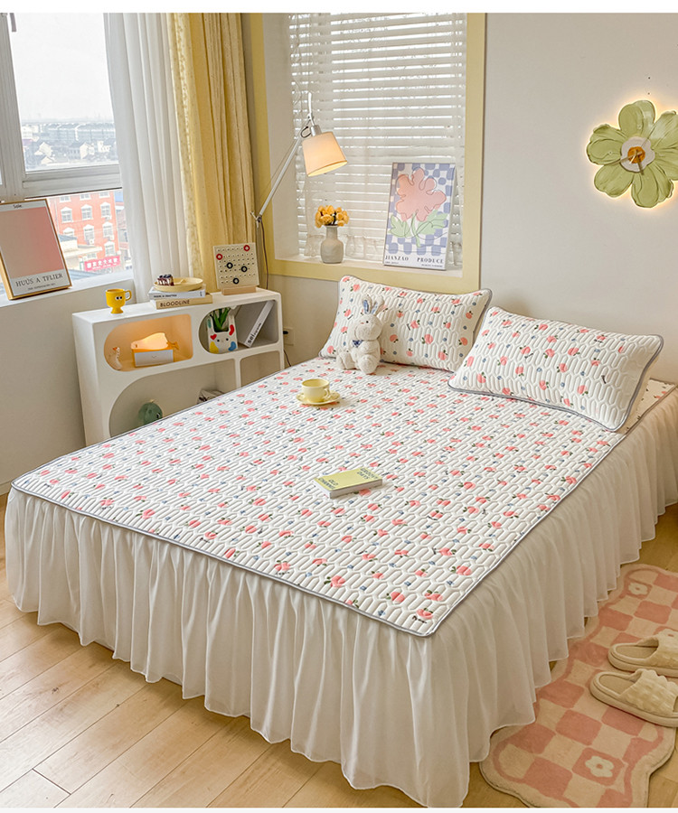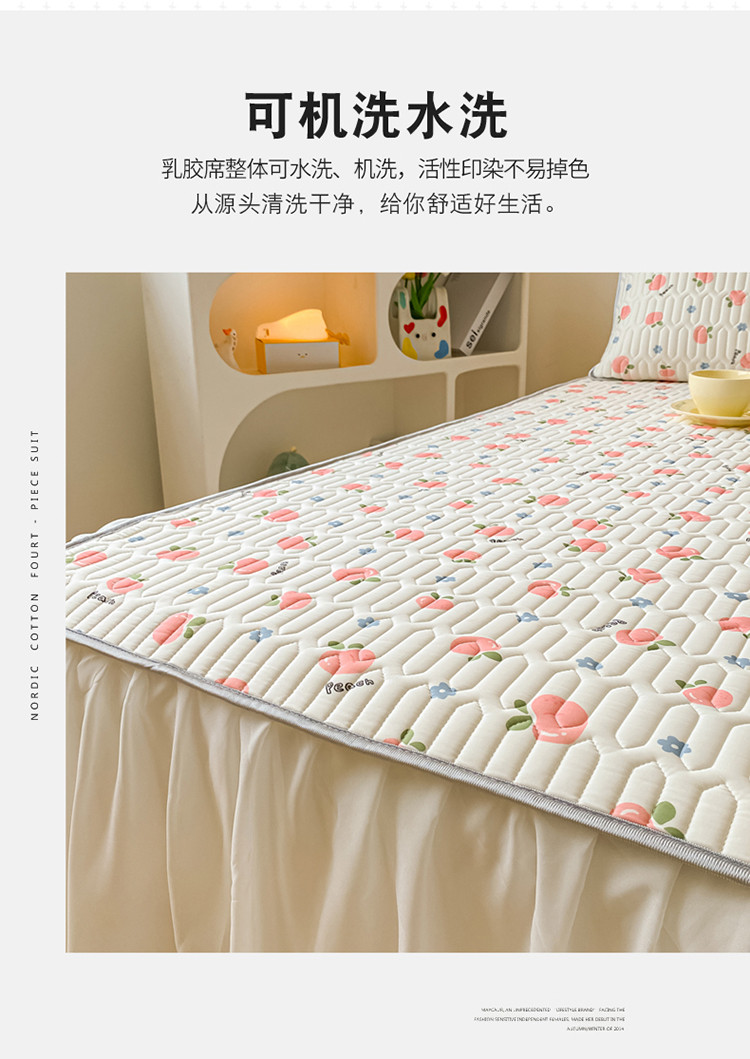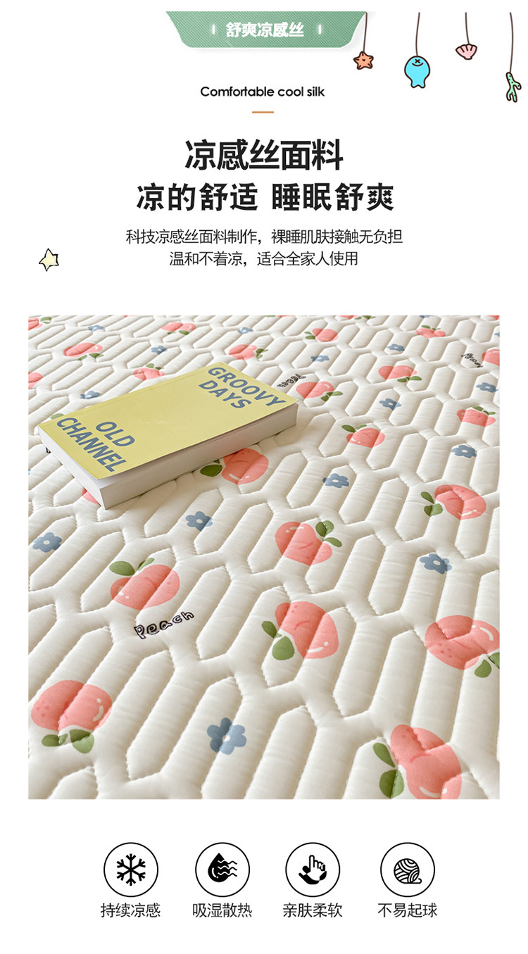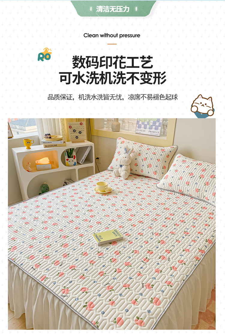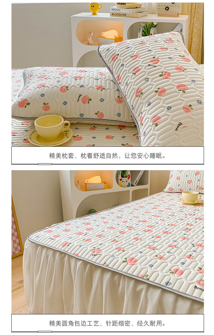 商品名称:金爱家 2023新款凉感丝乳胶软凉席床裙款三件套 小桃子