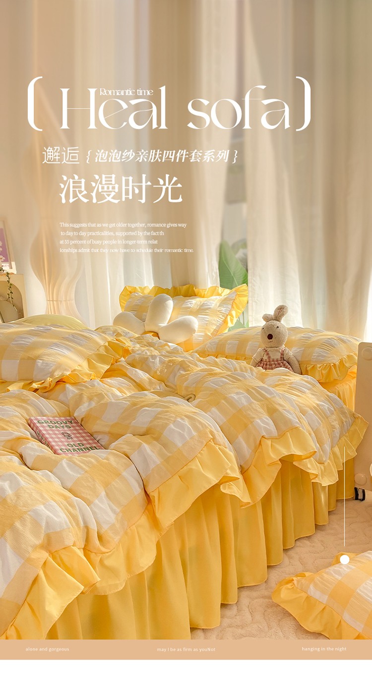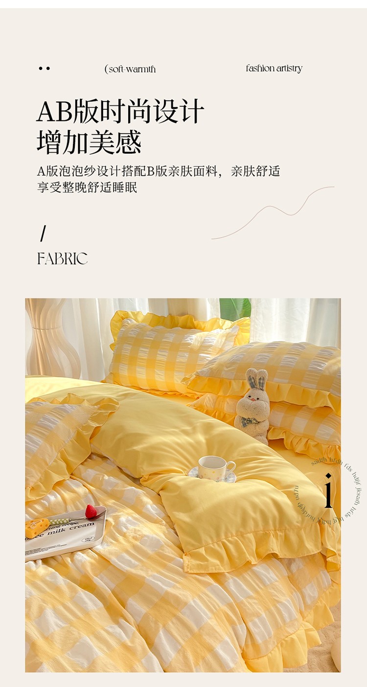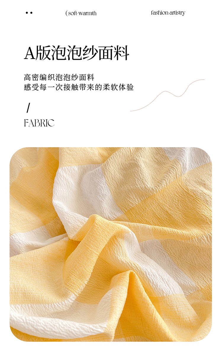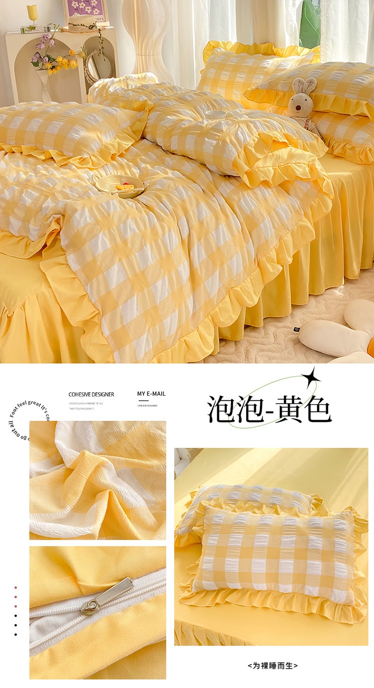 当前位置: 91家纺网 > 商品网购 > 床品套件 > 四件套 > 全棉普通四件套 > 梦之岛 2023新款韩版无印风泡泡纱四件套 泡泡-黄色