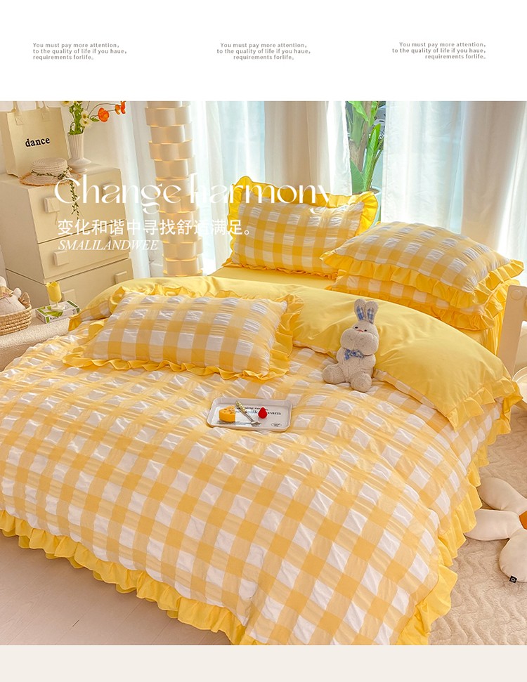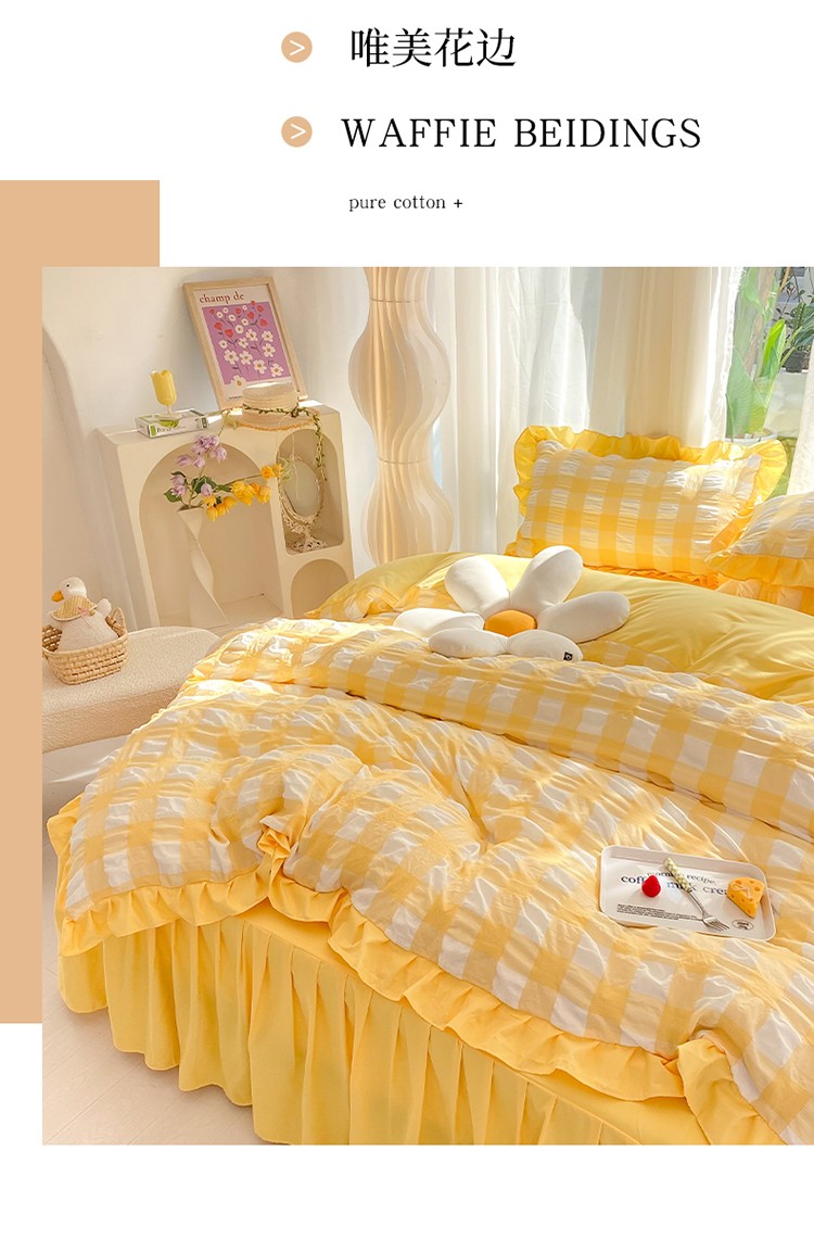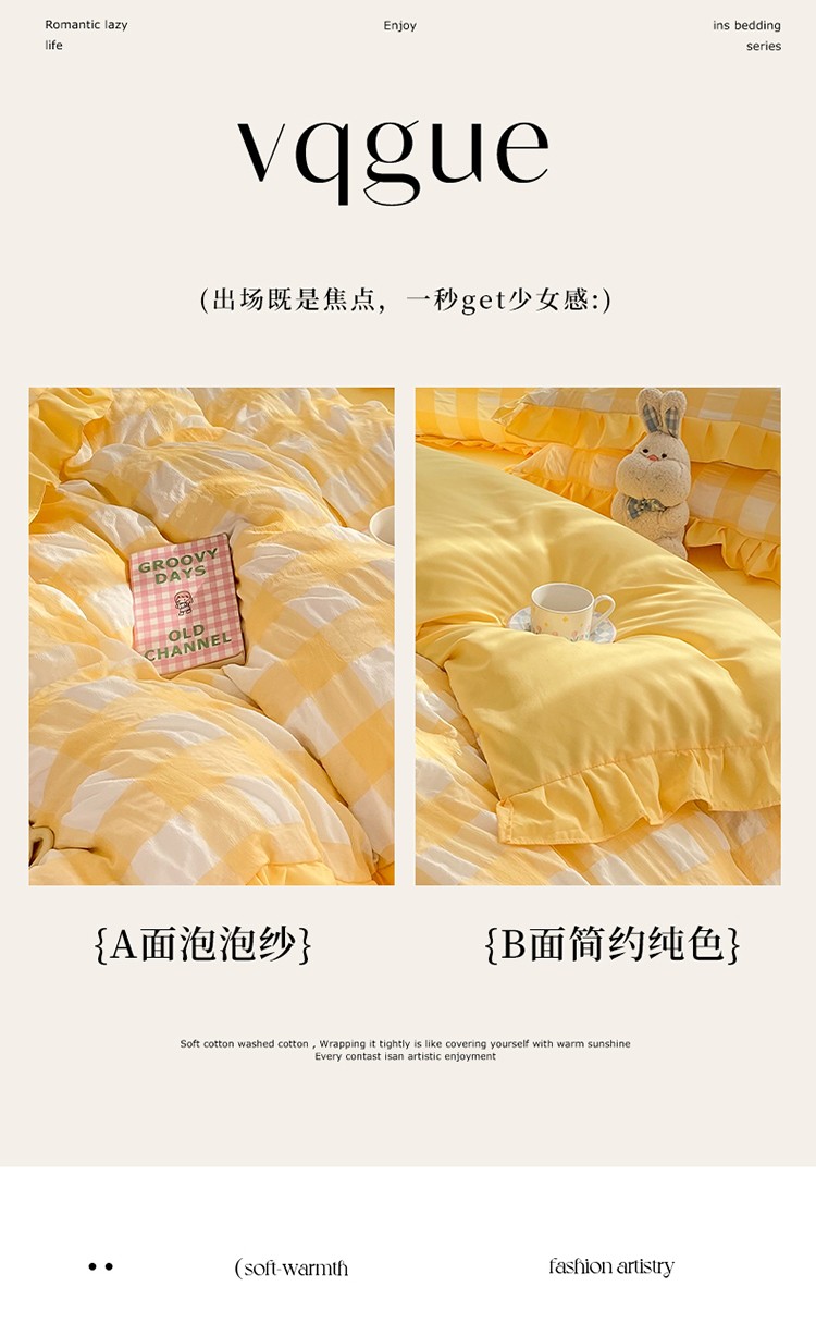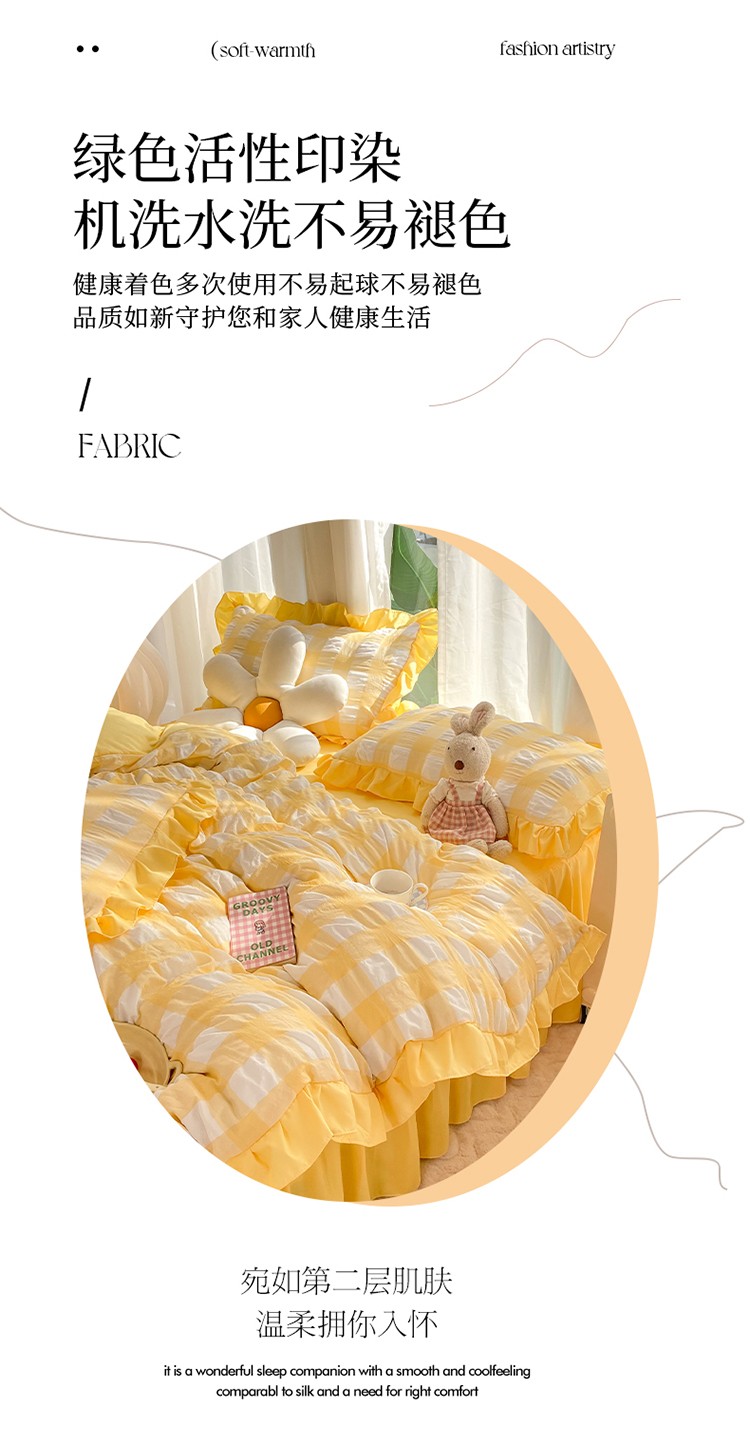 当前位置: 91家纺网 > 商品网购 > 床品套件 > 四件套 > 全棉普通四件套 > 梦之岛 2023新款韩版无印风泡泡纱四件套 泡泡-黄色