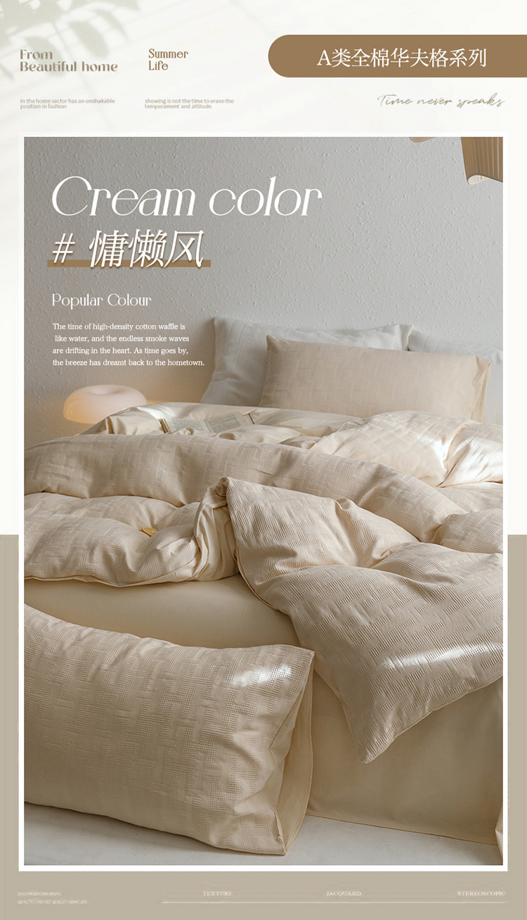 瑞米家居2023新款A类华夫格四件套-爱尚-迷之恋 爱尚-米色