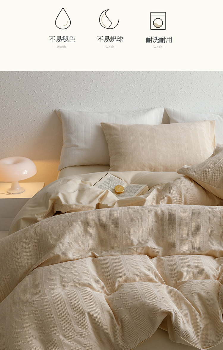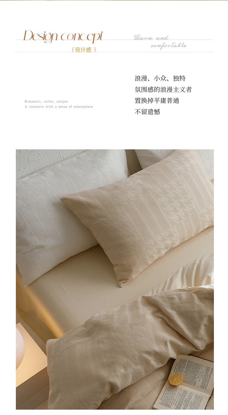 商品名称:瑞米家居2023新款A类华夫格四件套-爱尚-迷之恋 迷之恋-米色