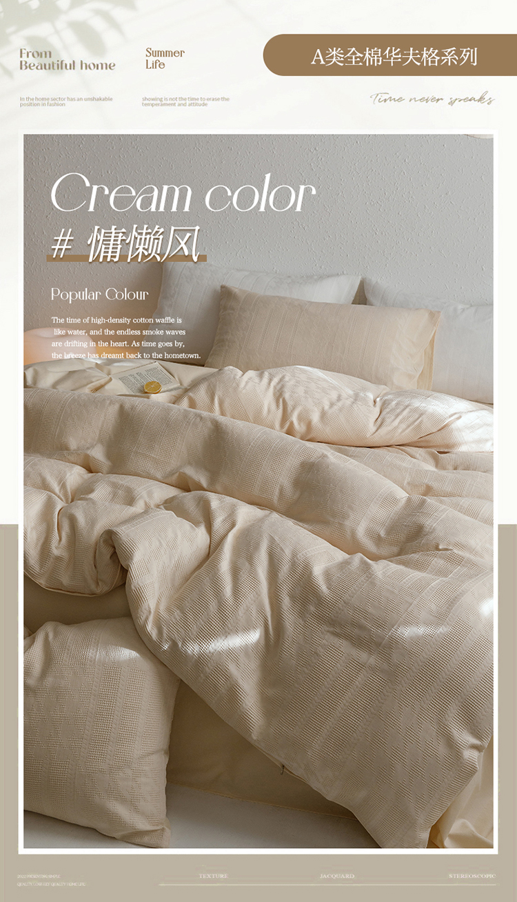 瑞米家居2023新款A类华夫格四件套-爱尚-迷之恋 迷之恋-米色