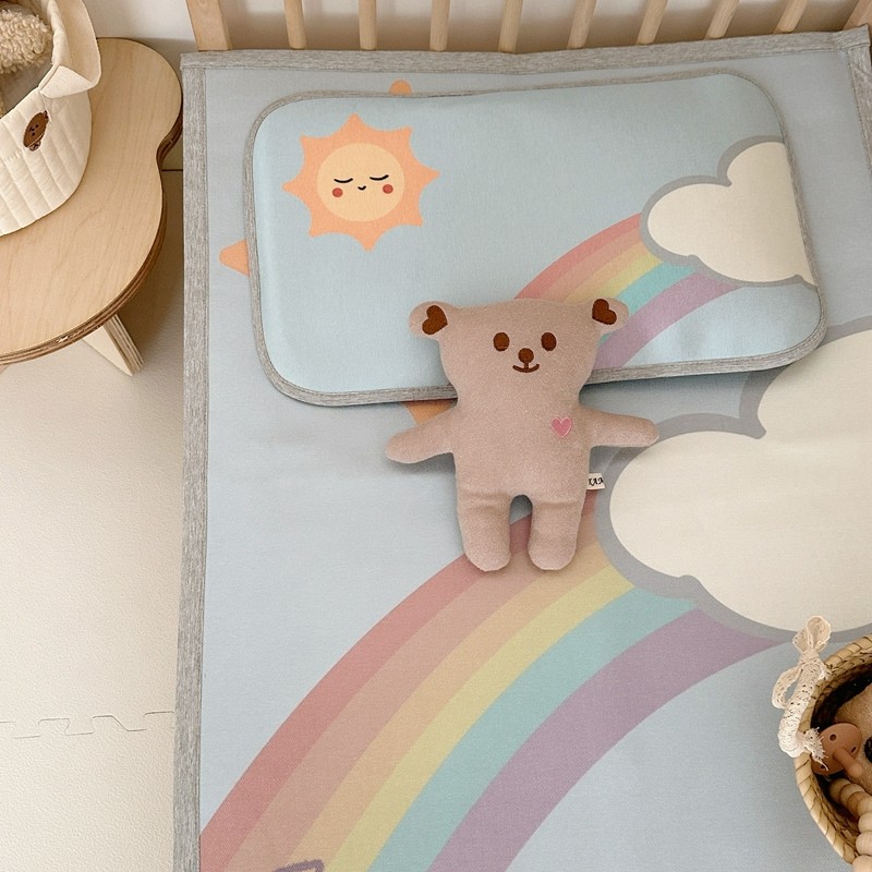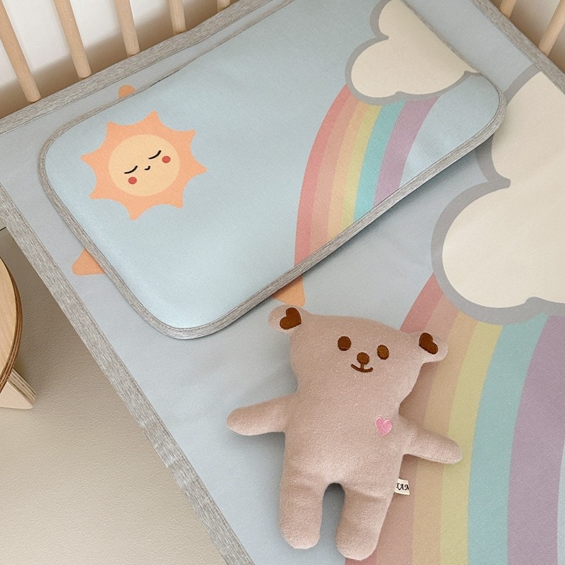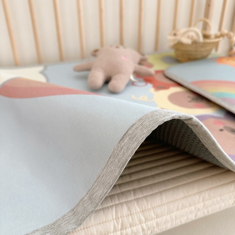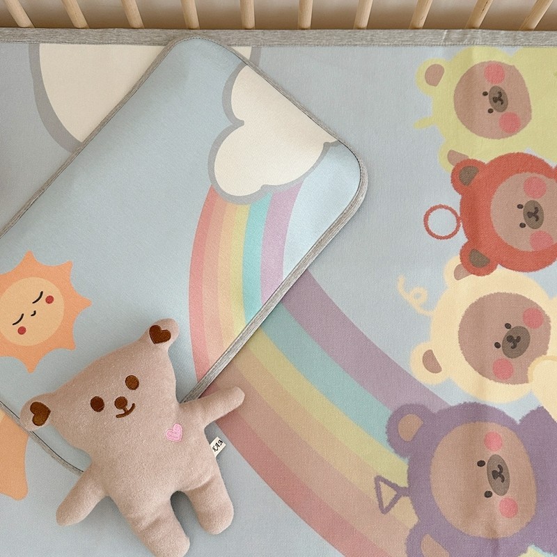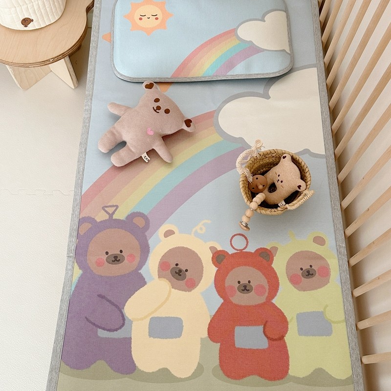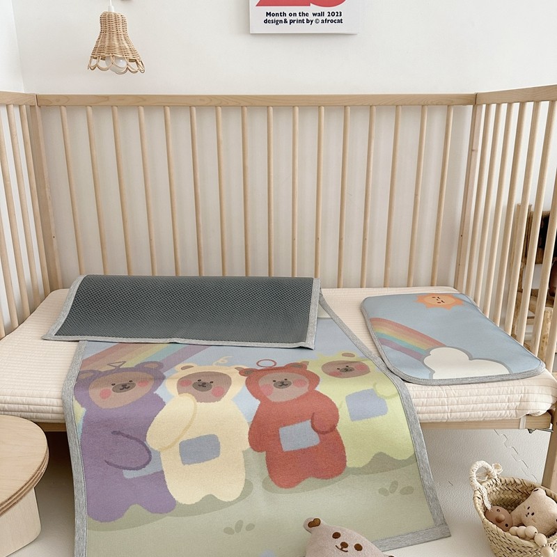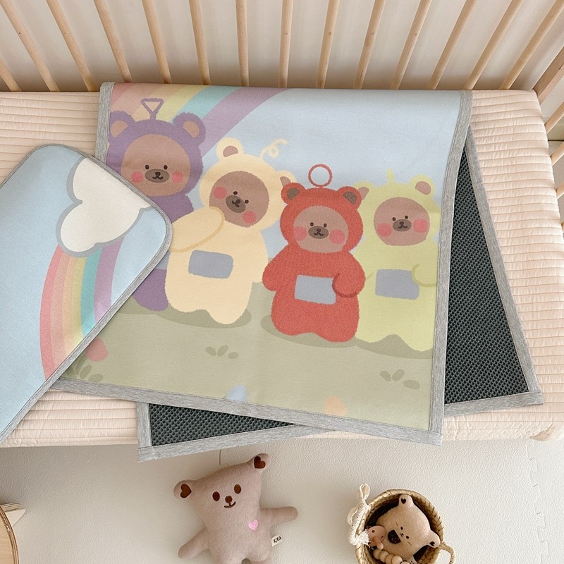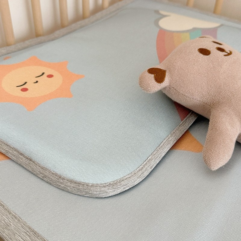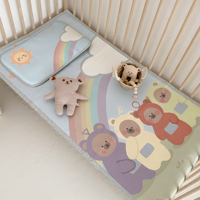 (总)橘滋 2025夏日新款高端A类原创设计婴儿童趣卡通数码印花冰丝席凉席-床席床笠,大眼熊仔,叠叠乐园,蝴蝶结兔兔,欢乐曲奇,木马小熊,太空冒险,熊猫胖达