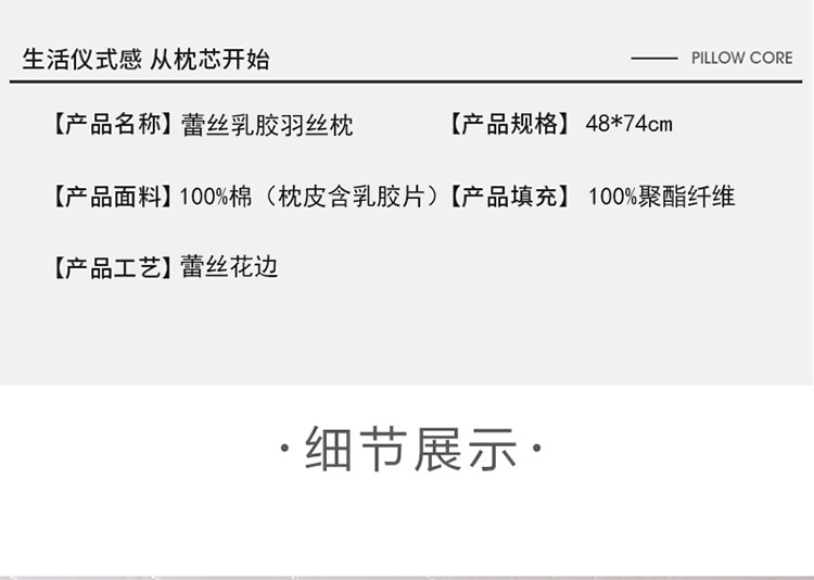 当前位置: 91家纺网 > 商品网购 > 枕头/枕芯/保健枕/颈椎枕 > 普通枕芯 > (总)枕之坊 2023新款蕾丝乳胶羽丝枕