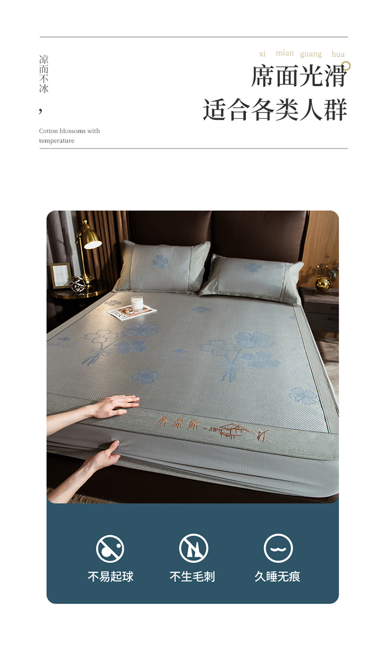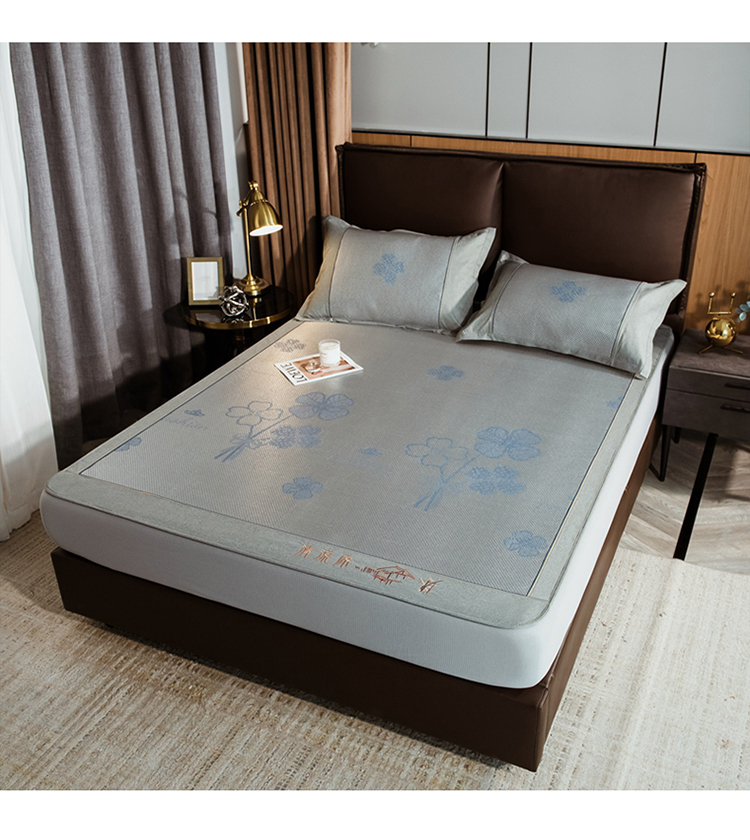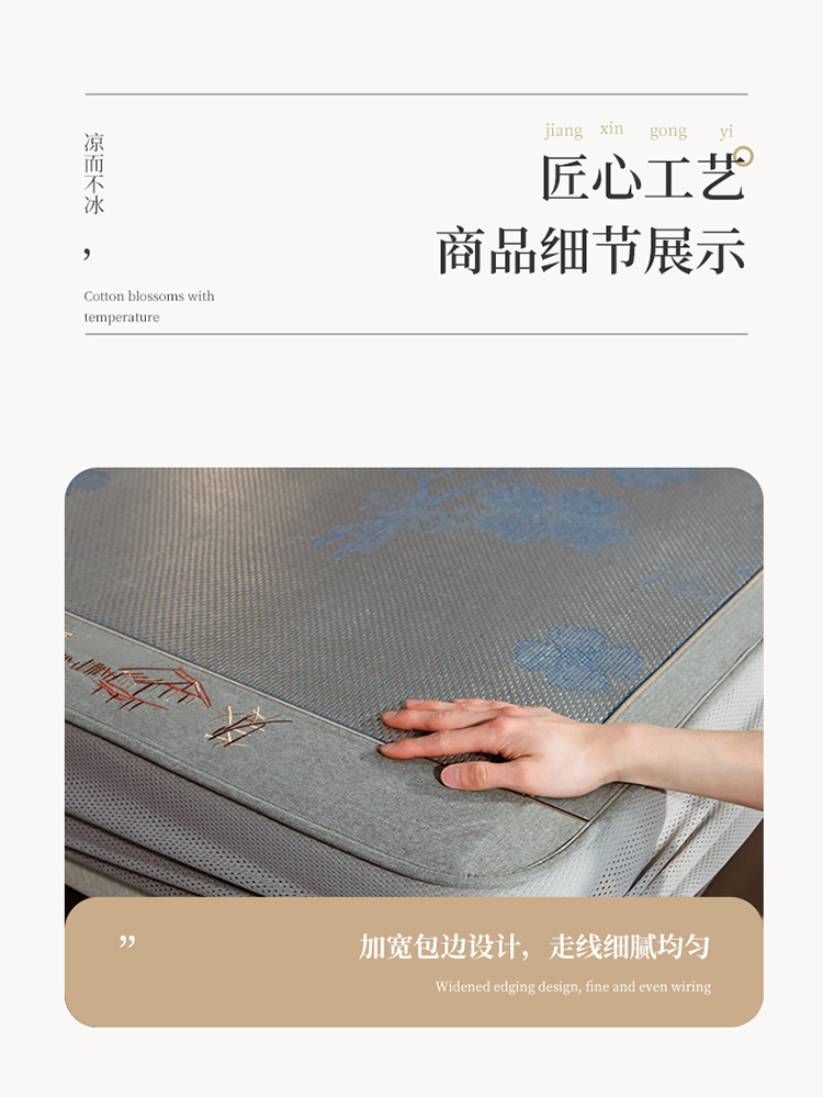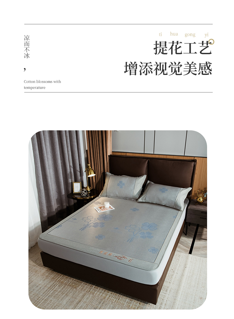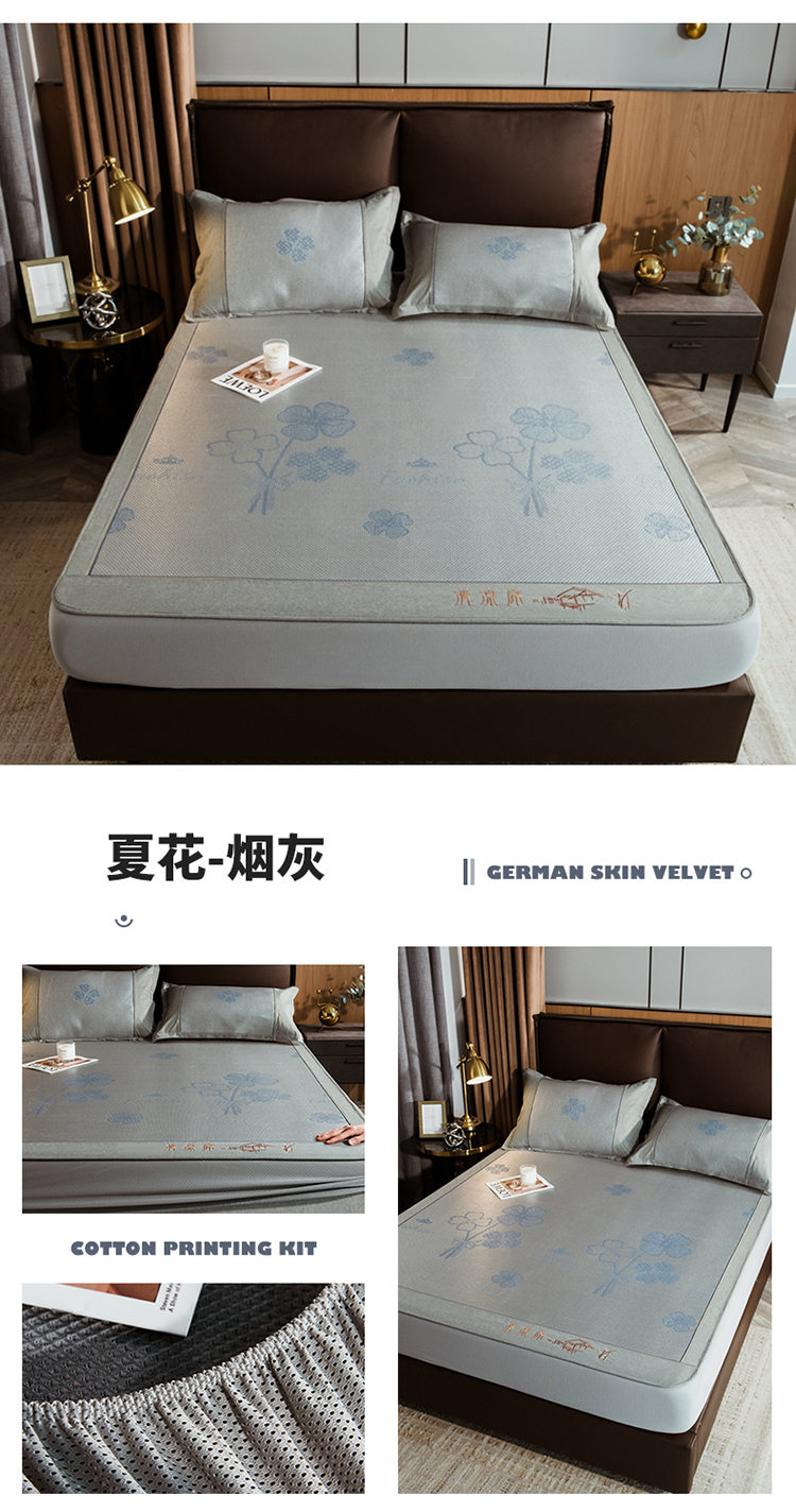 商品名称:全季家居 2023新款加厚加密宽边刺绣提花冰藤凉席-床笠款 夏花-烟灰