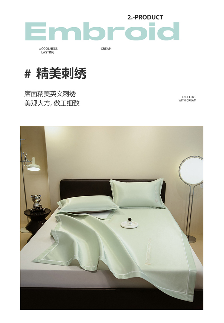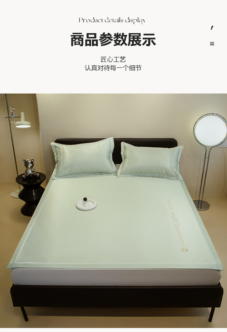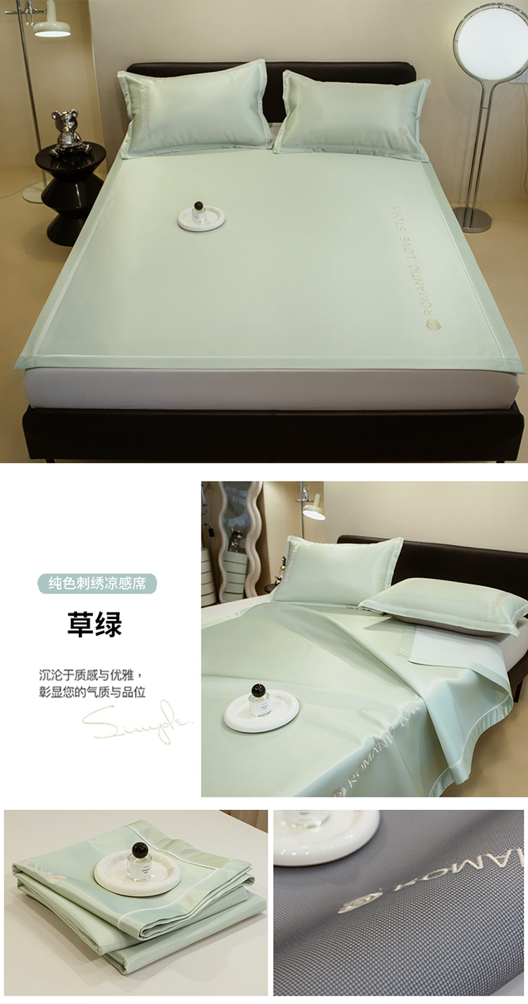 商品名称:全季家居 2023新款纯色凉感丝刺绣凉席 草绿