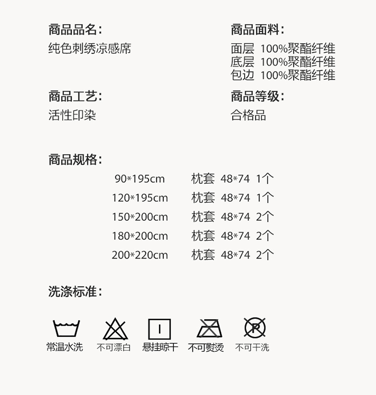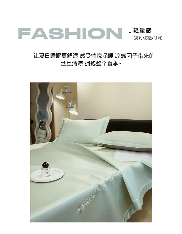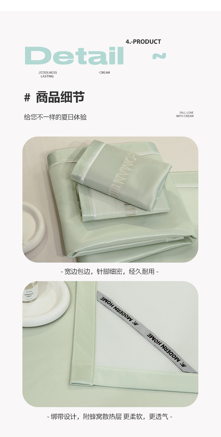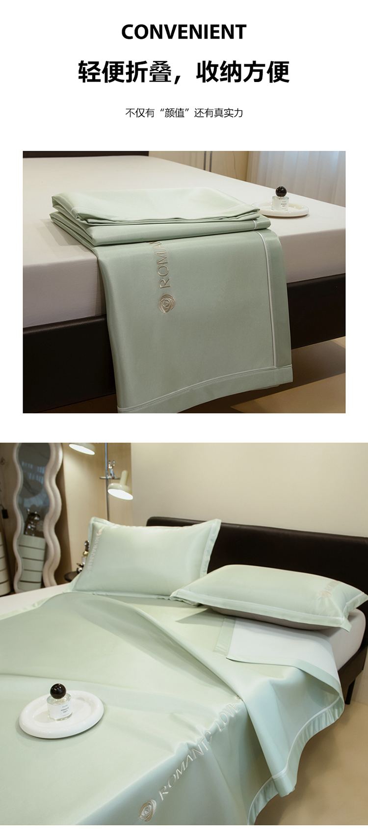 商品名称:全季家居 2023新款纯色凉感丝刺绣凉席 草绿