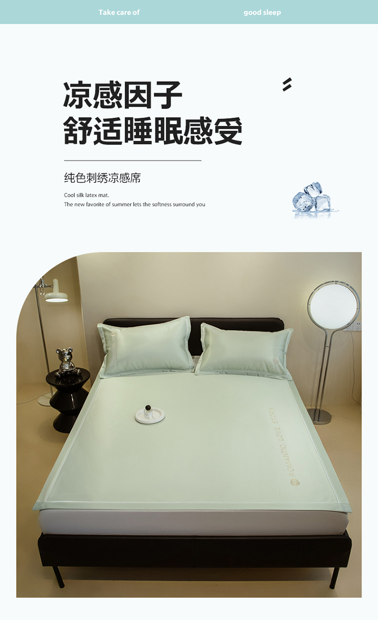 (总)全季家居 2023新款纯色凉感丝刺绣凉席,天蓝,灰色,粉色,绿色,草绿