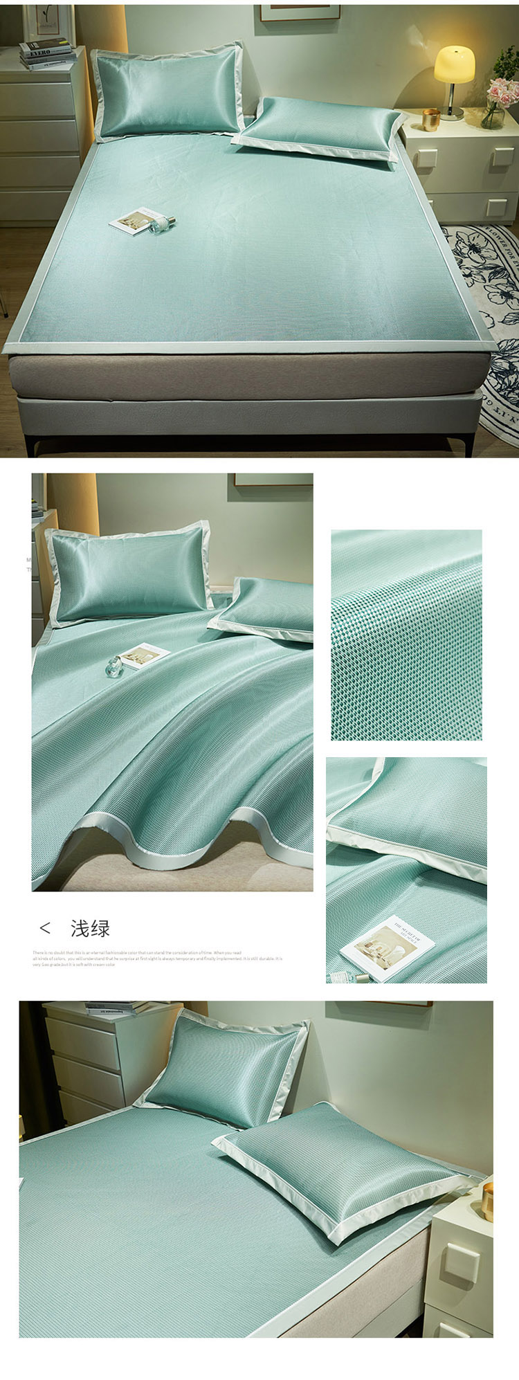 商品名称:春晓2024新款高密A类碳光直角冰丝席凉席 纯色绿