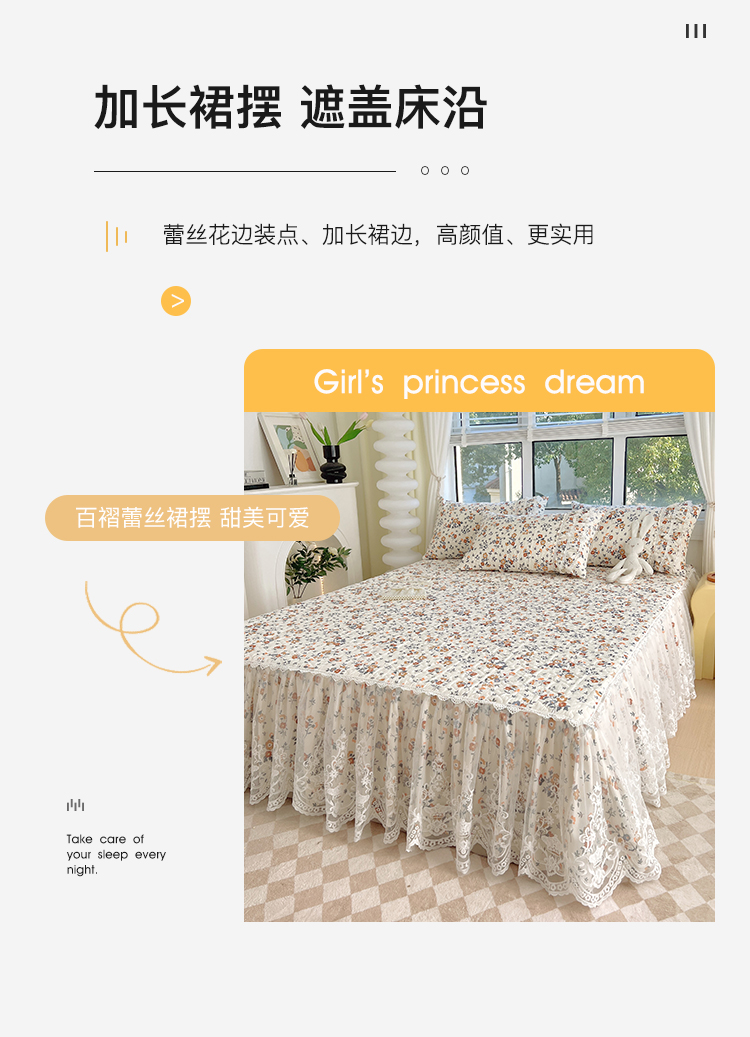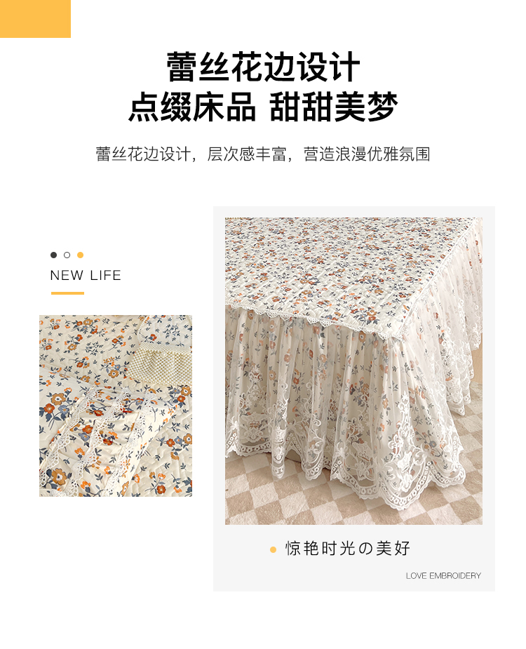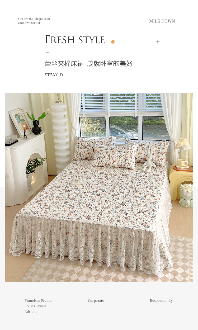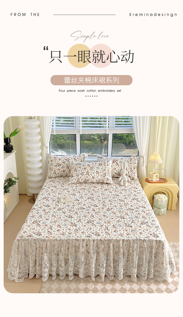 罗艺轩 2024新款法式风蕾丝夹棉床裙三件套 花想容-森之语