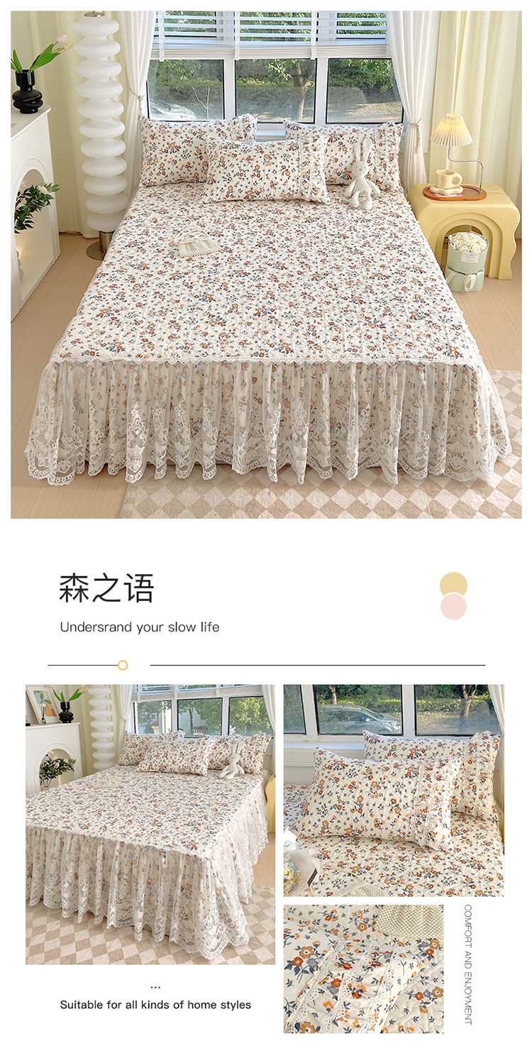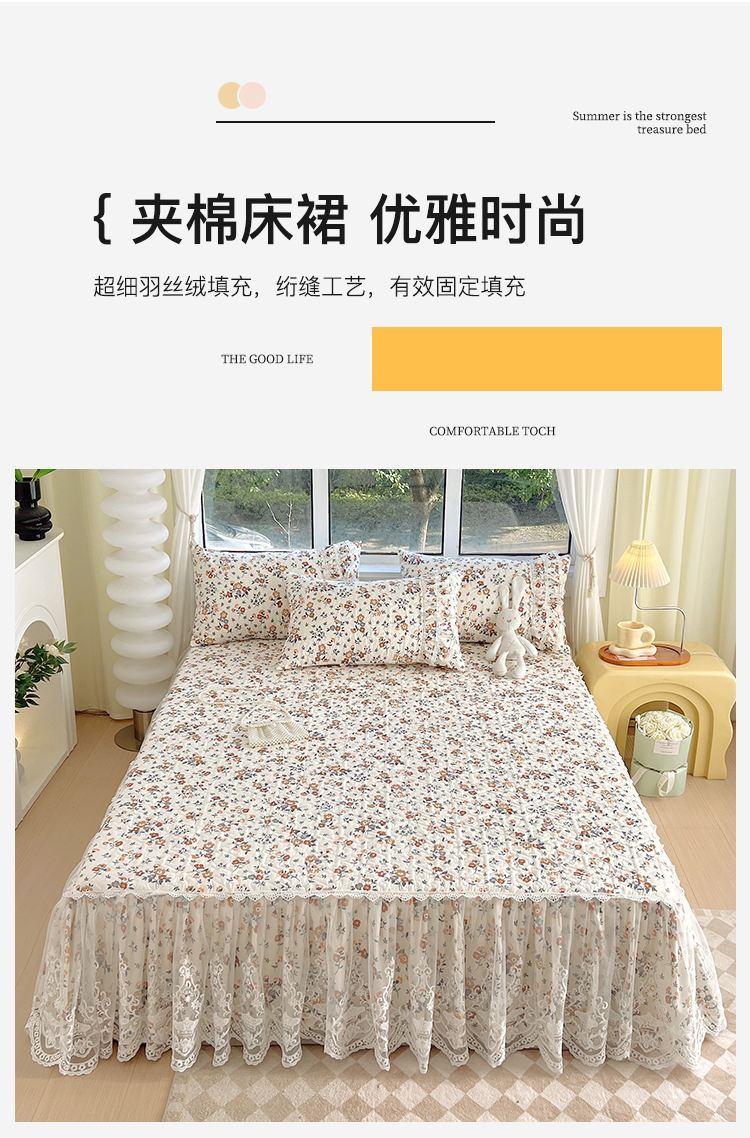 商品名称:罗艺轩 2024新款法式风蕾丝夹棉床裙三件套 花想容-森之语