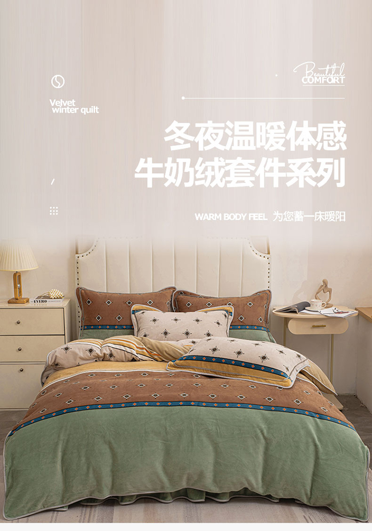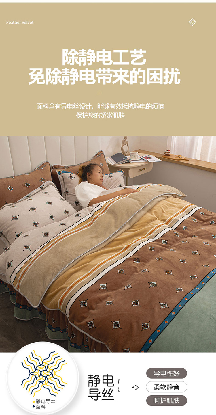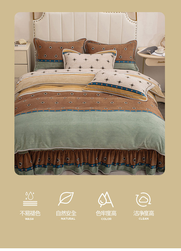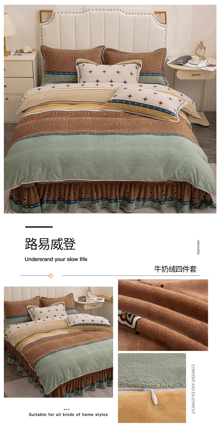 商品名称:登登家纺 加厚印花牛奶金貂法莱宝宝绒四件套 路易威登