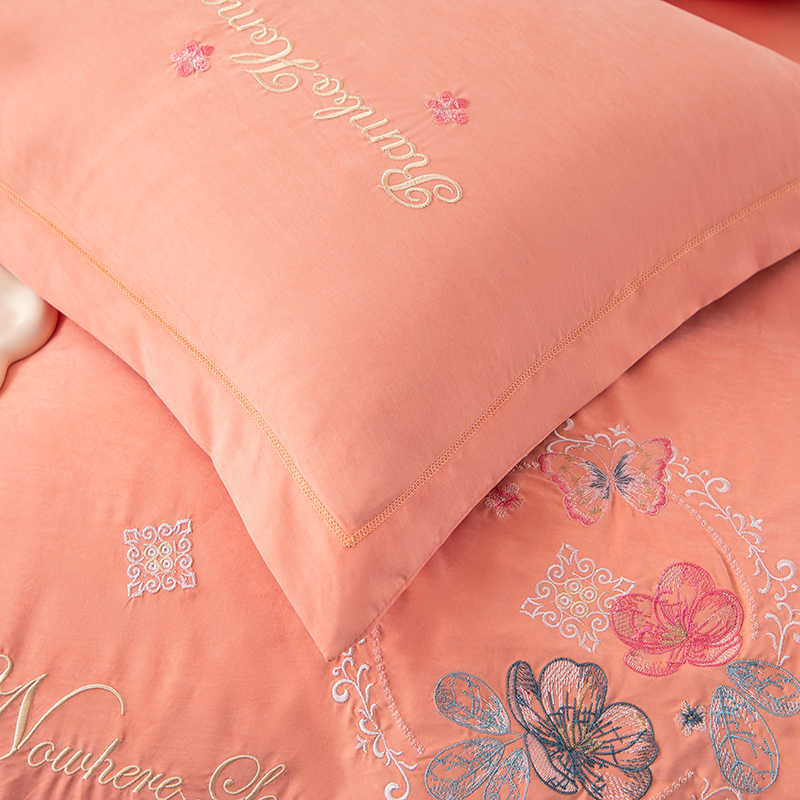 商品名称:优姿家纺 2024新款锦棉绣花四件套吊边床单一字绣枕套套件-锦绣花园 锦绣花园-橙