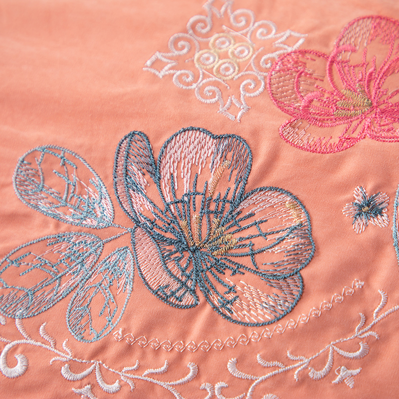 (总)优姿家纺 2026新款全棉拼接绣花四件套,繁花粉,繁花灰,繁花桔,繁花蓝,繁花绿,繁花紫
