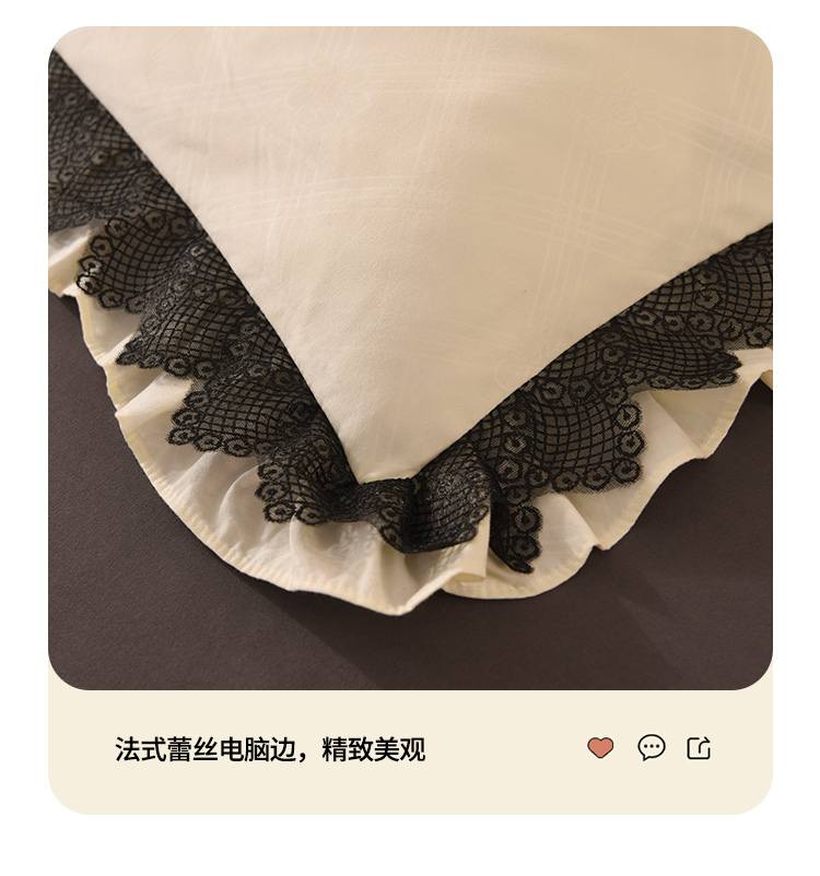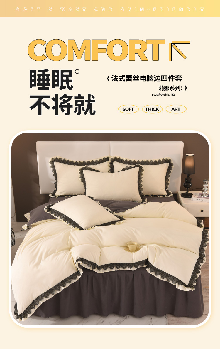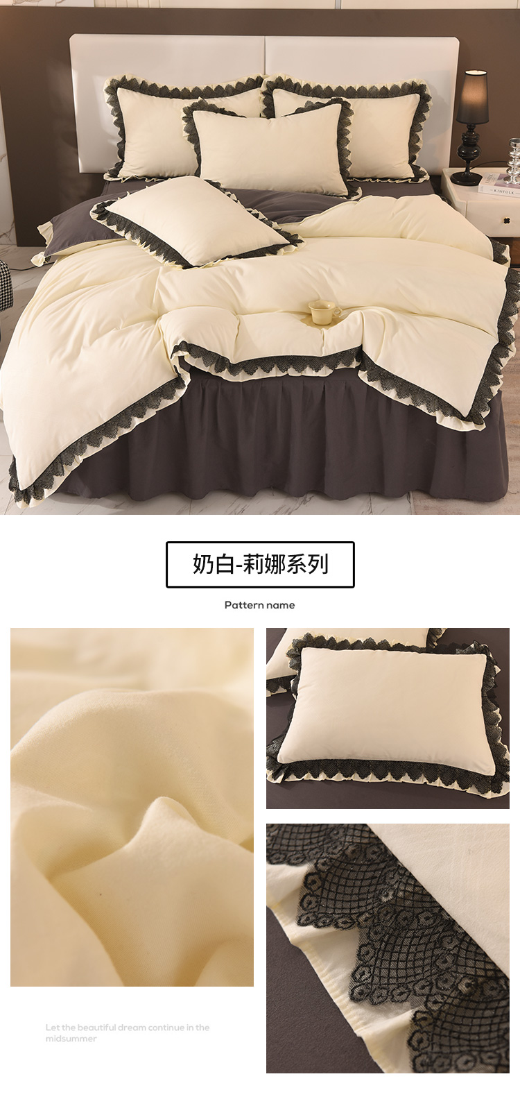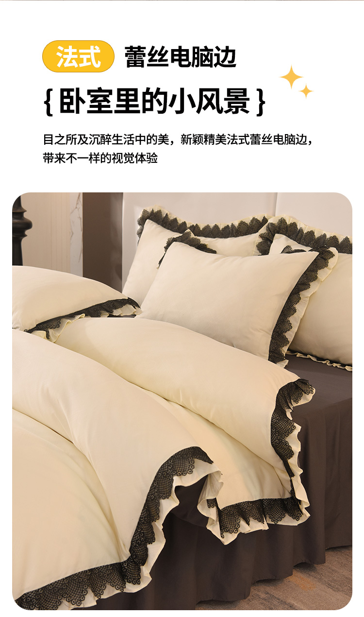 芭比蔓 2024新款法式蕾丝电脑边四件套-莉娜系列 奶白