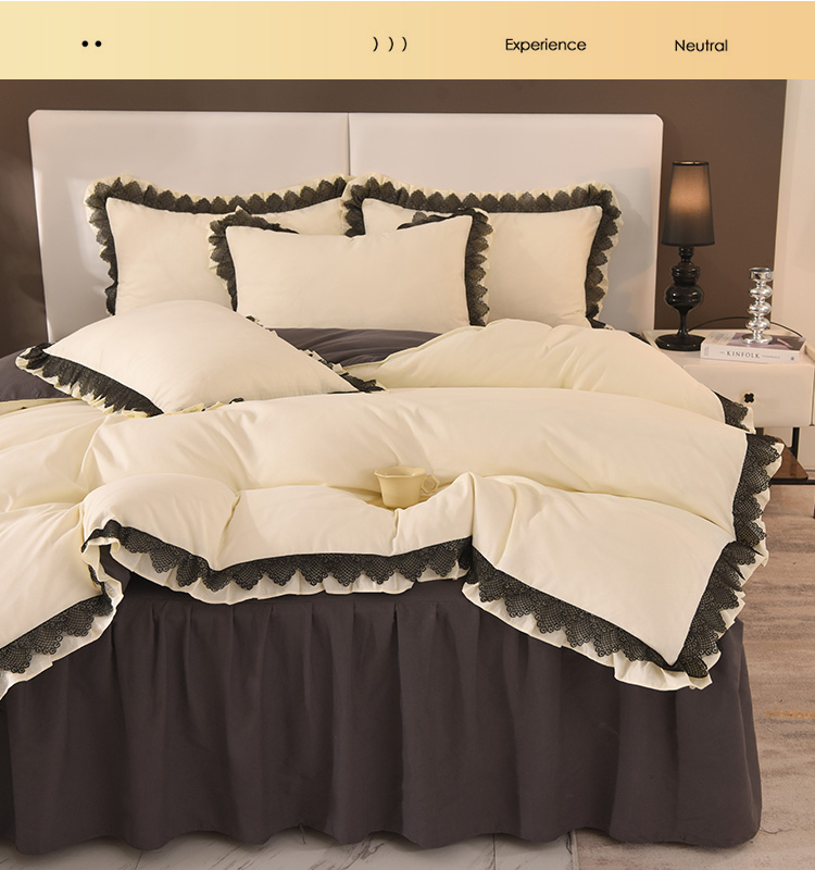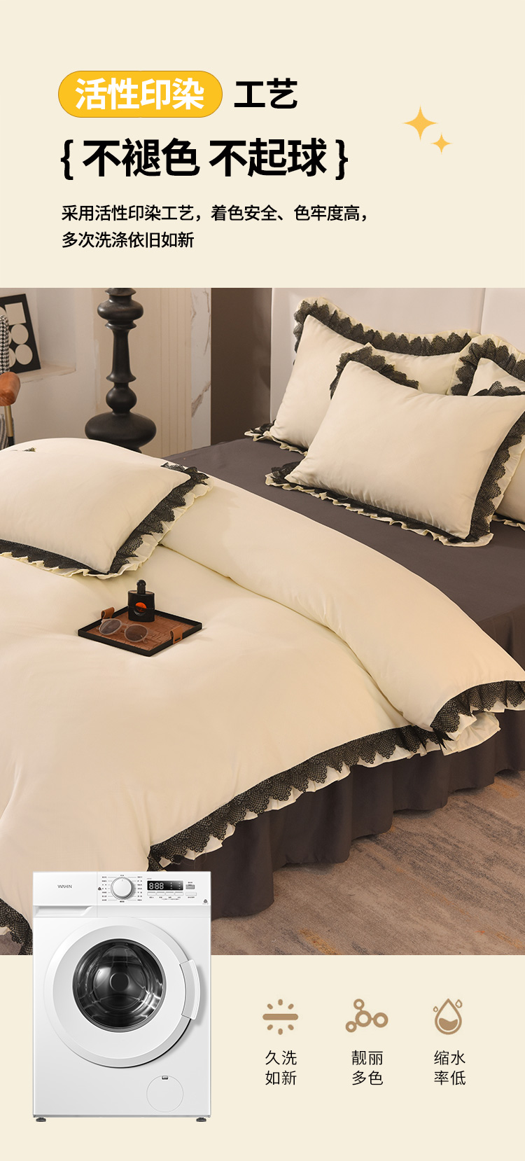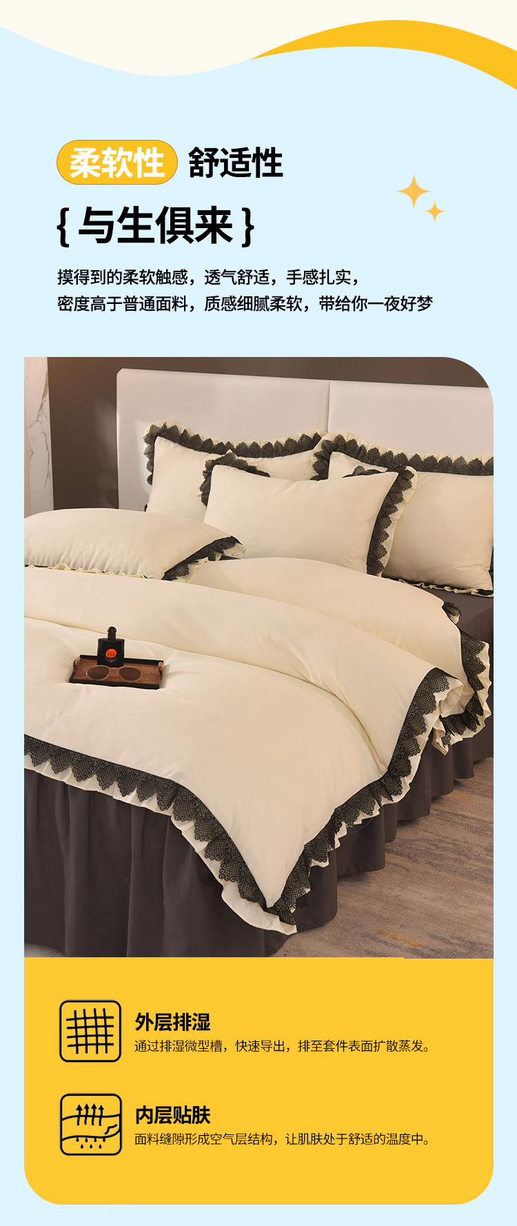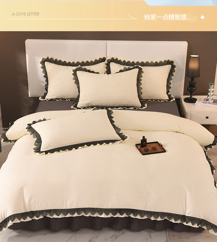 芭比蔓 2024新款法式蕾丝电脑边四件套-莉娜系列 奶白