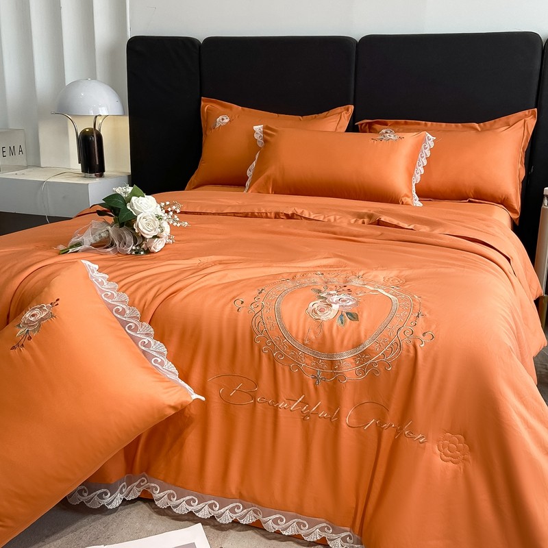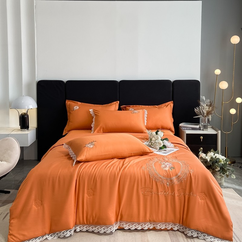 新款欧式风情系列刺绣水洗真丝夏被四件套 欧式风情-艾玛橙