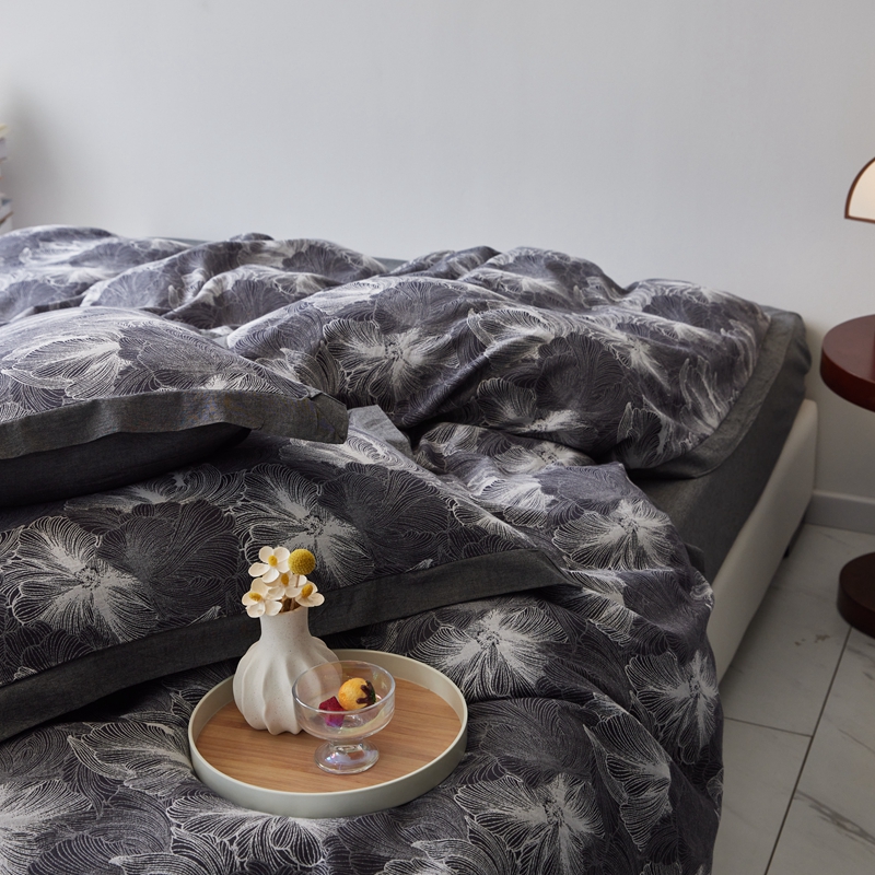 当前位置: 91家纺网 > 商品网购 > 床品套件 > 四件套 > 全棉普通四件套 > 安莱生活 2023新品双层纱大提花高奢工艺款四件套-国色天香系列 国色天香--深灰