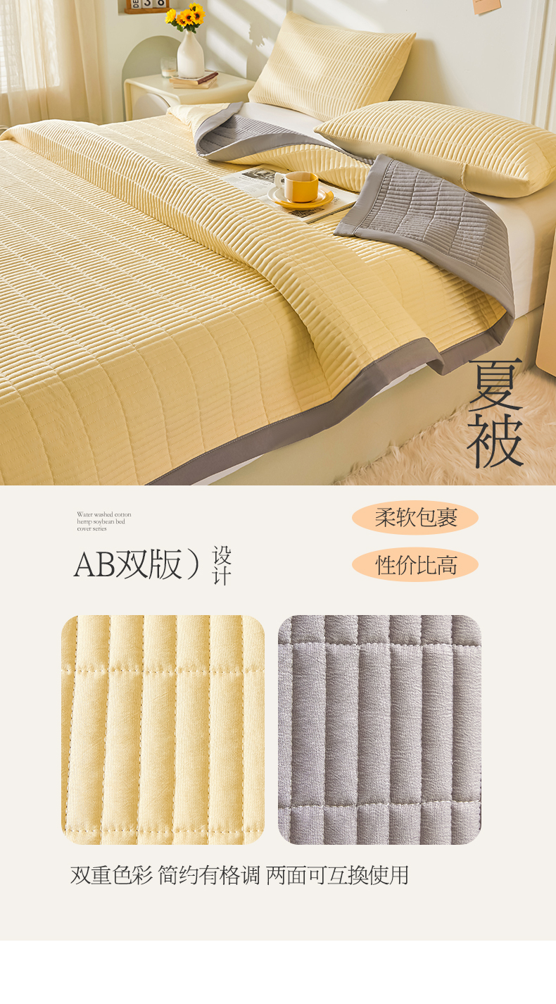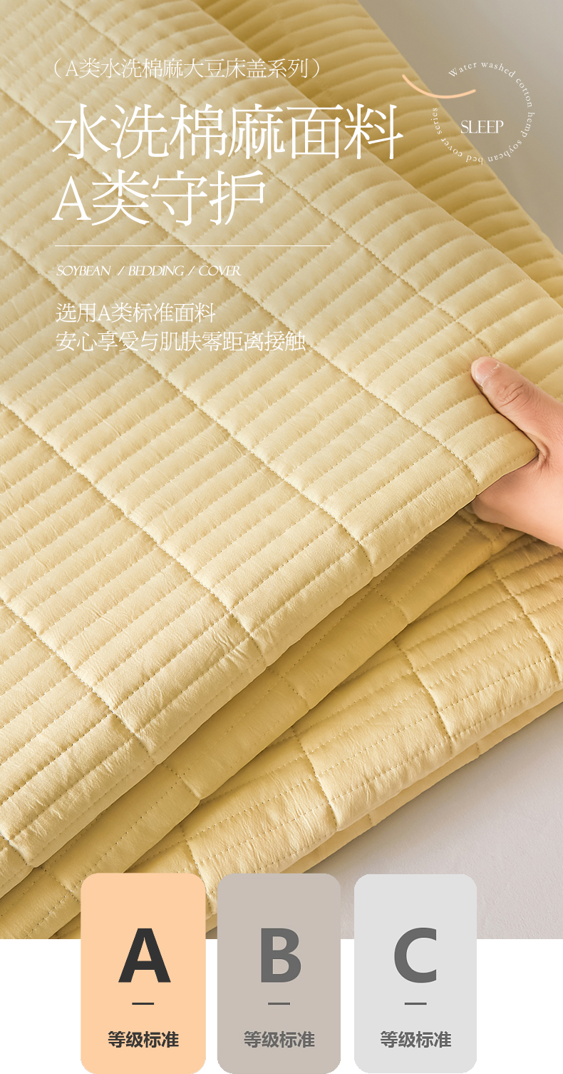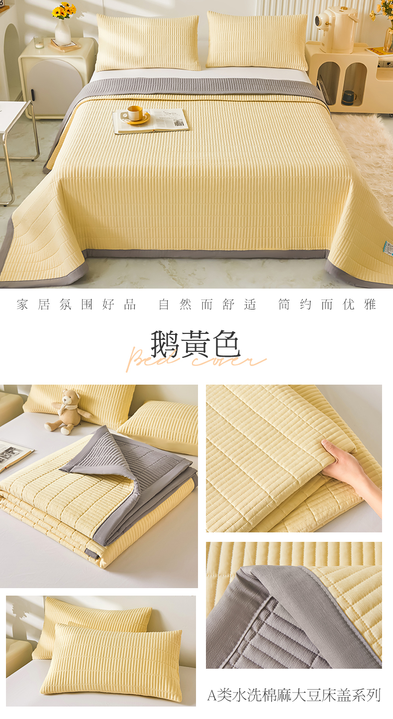 商品名称:圣比熊水洗棉麻床盖大豆纤维夹棉加厚宿舍铺盖两用床单床裙保护垫 鹅黄色