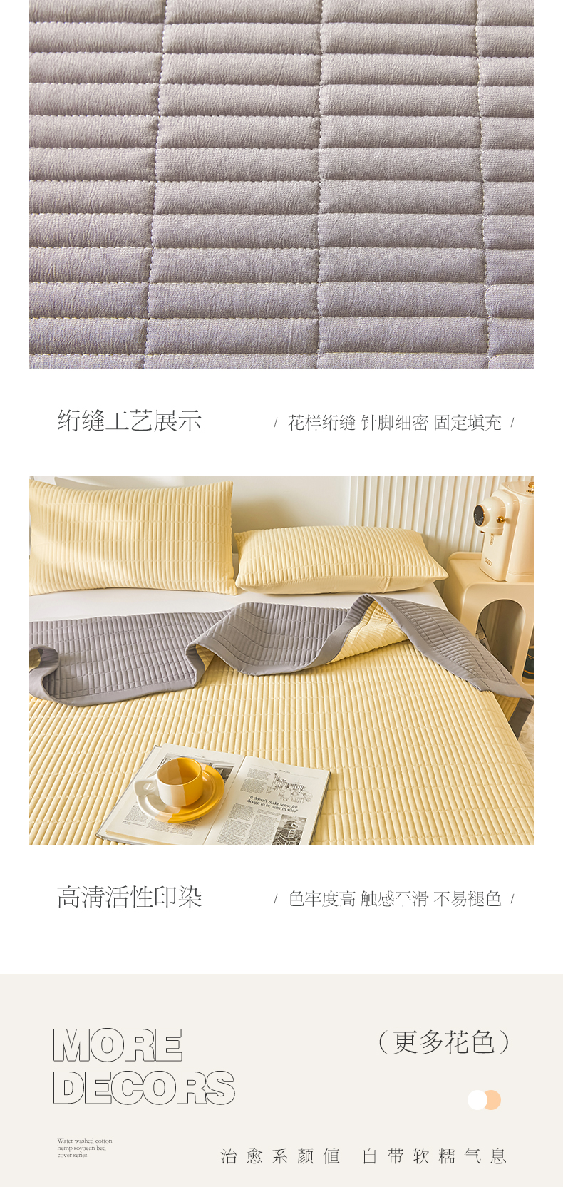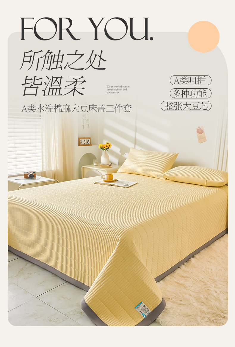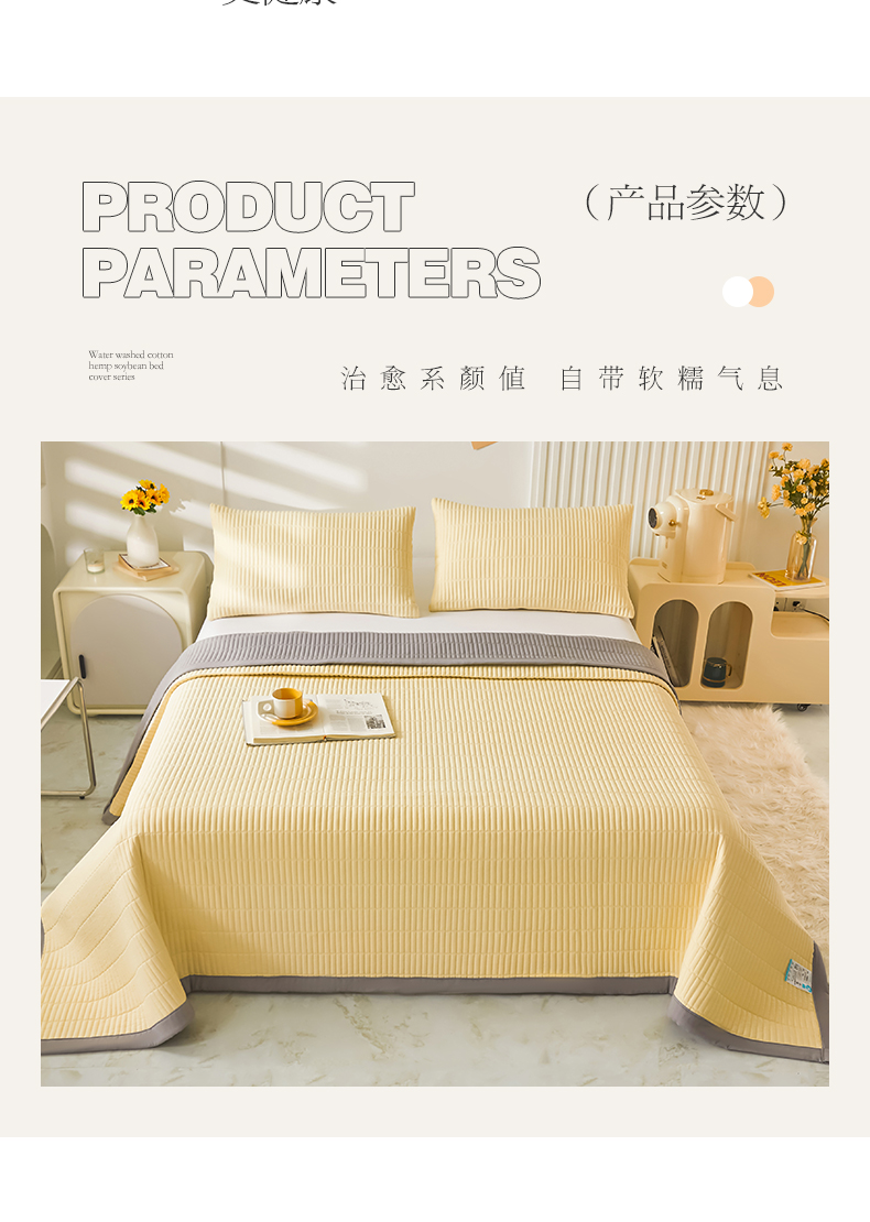商品名称:圣比熊水洗棉麻床盖大豆纤维夹棉加厚宿舍铺盖两用床单床裙保护垫 鹅黄色