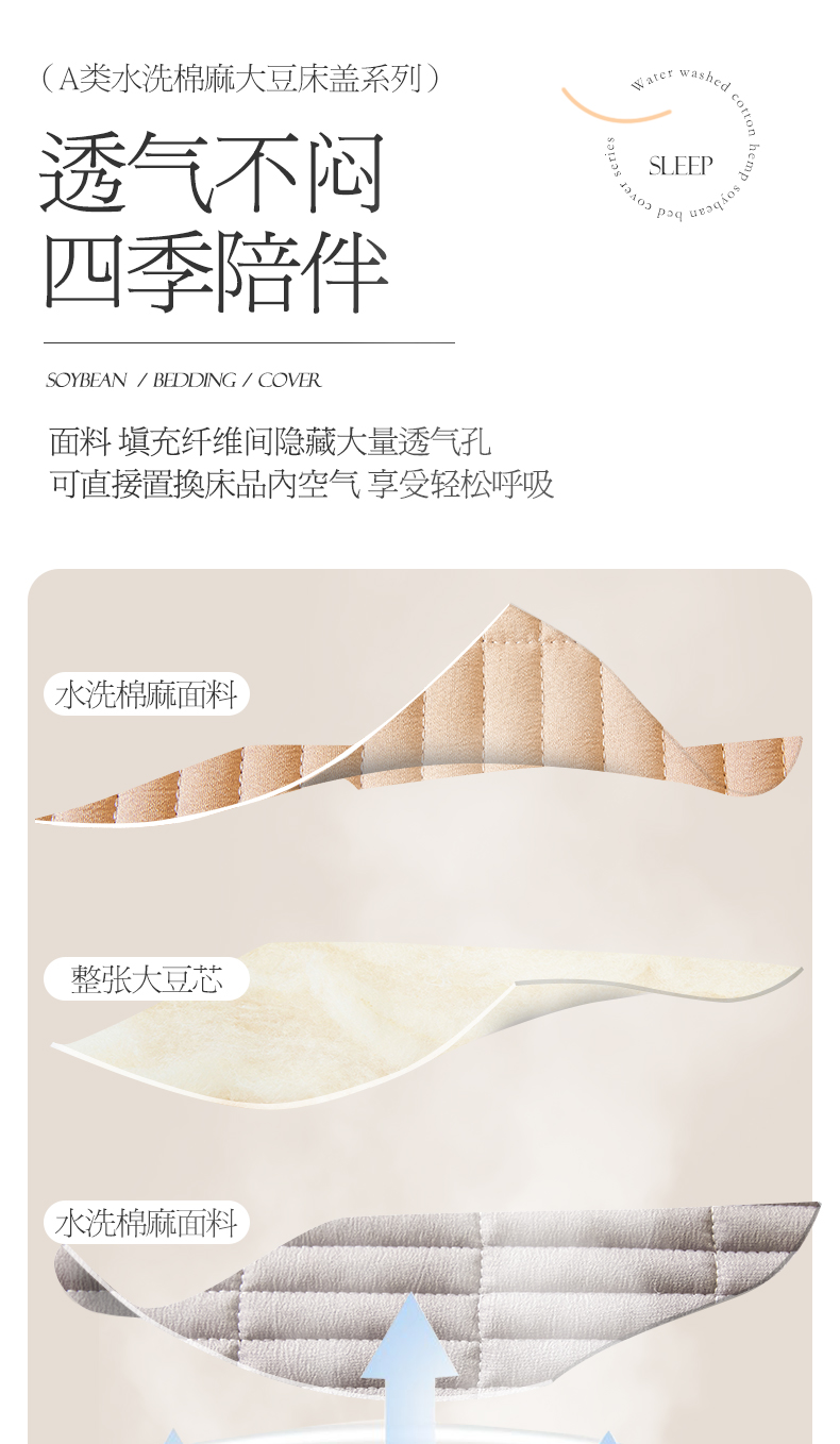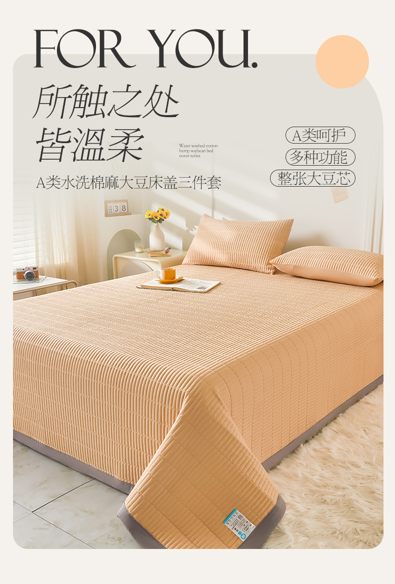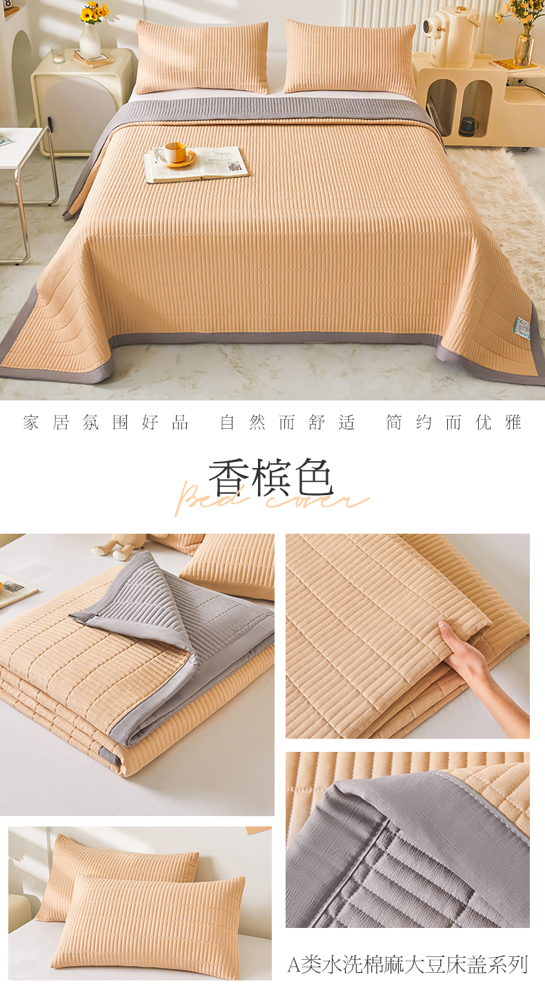 商品名称:圣比熊水洗棉麻床盖大豆纤维夹棉加厚宿舍铺盖两用床单床裙保护垫 香槟色