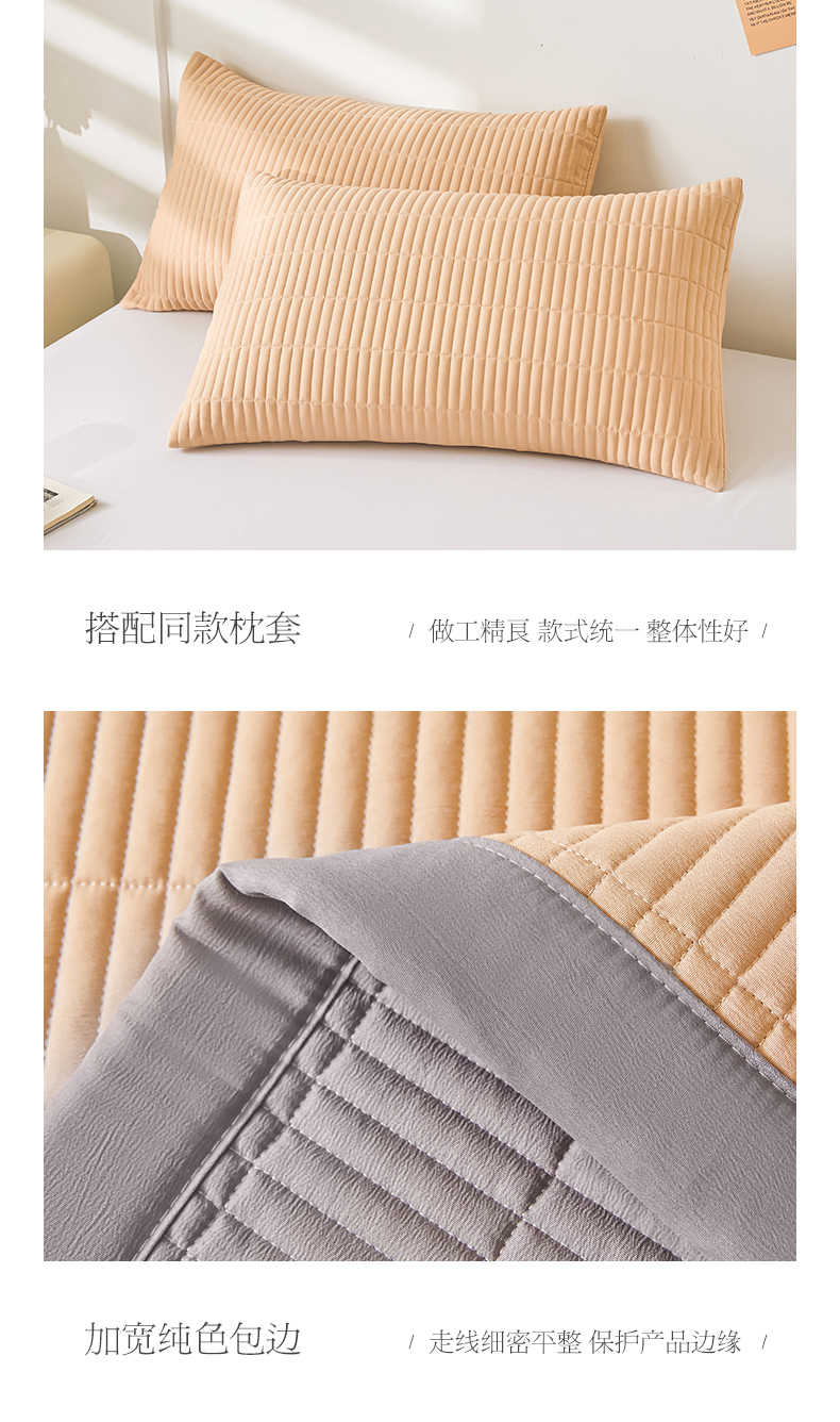 圣比熊水洗棉麻床盖大豆纤维夹棉加厚宿舍铺盖两用床单床裙保护垫 香槟色