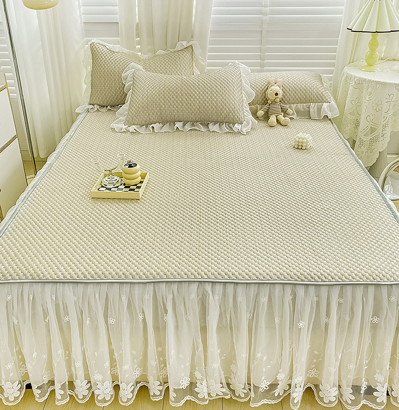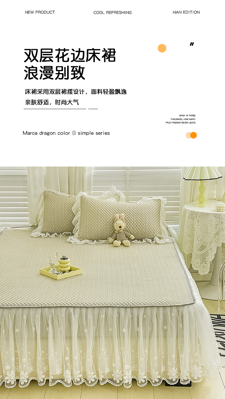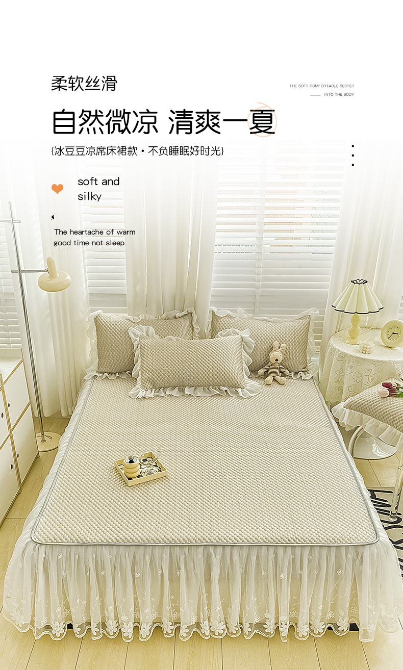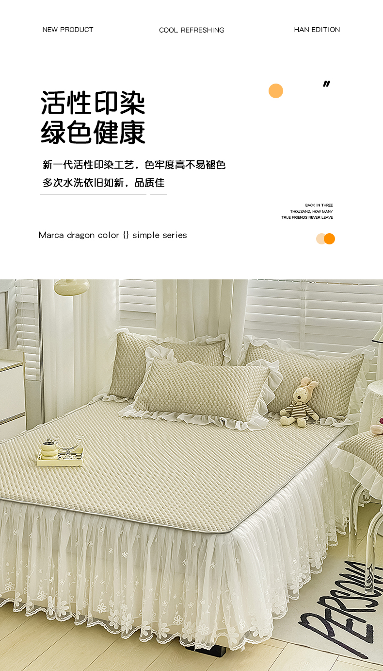 商品名称:罗艺轩 2024新款抗菌高克重双层复合床裙款豆豆席三件套 倾城雅韵 咖色