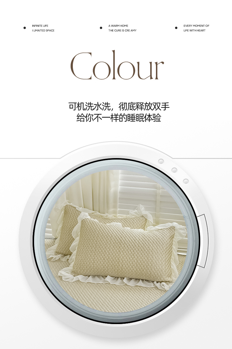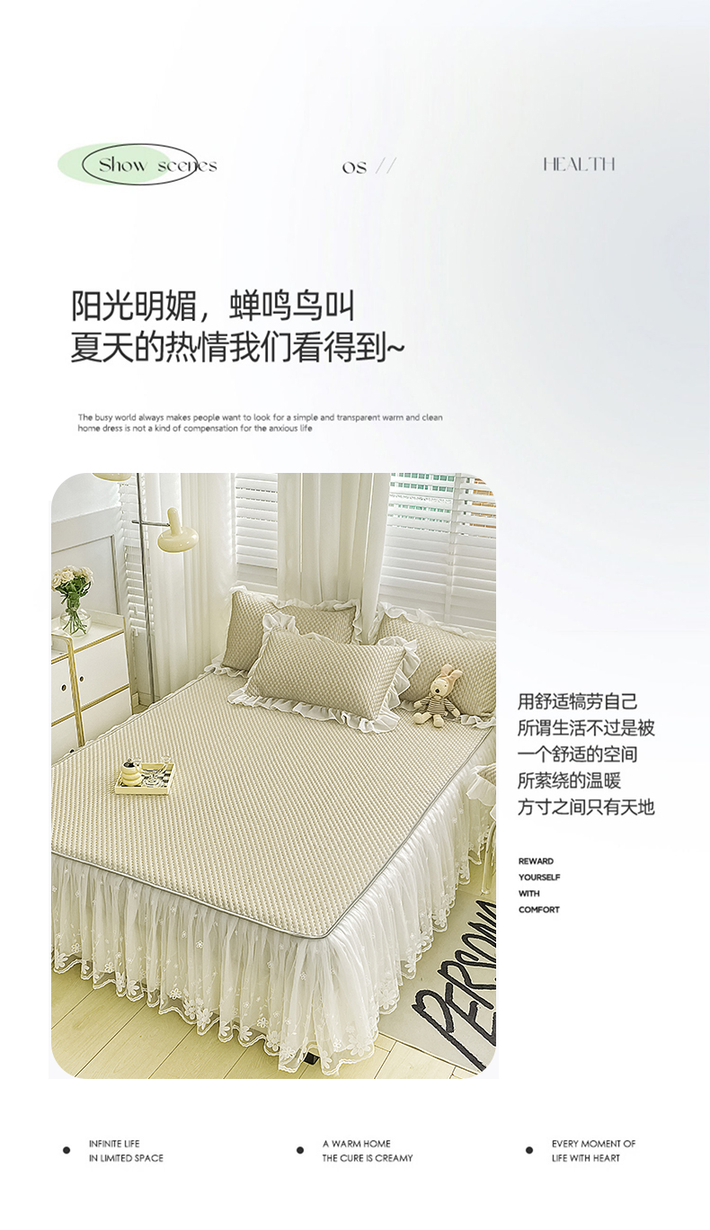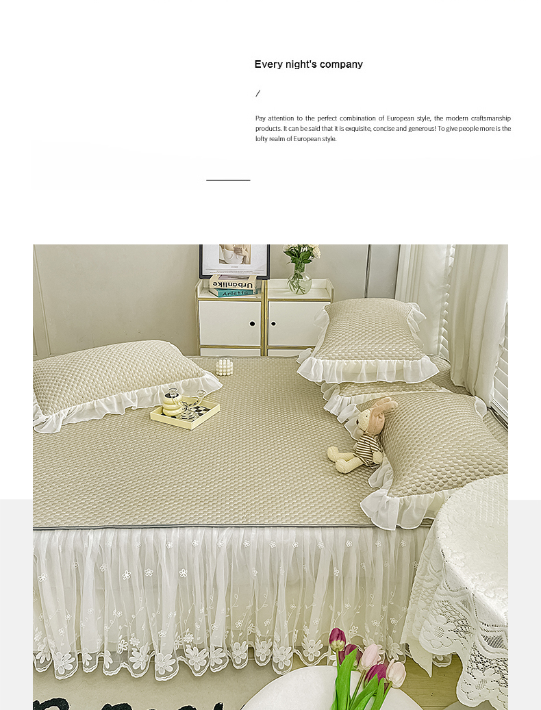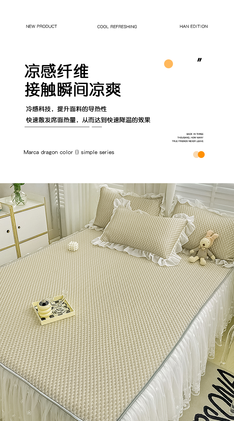 商品名称:罗艺轩 2024新款抗菌高克重双层复合床裙款豆豆席三件套 倾城雅韵 咖色
