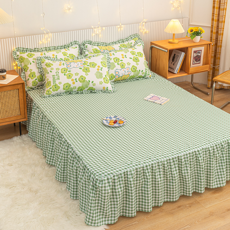 莎臣豹2025新款水洗磨毛活性印花植物羊绒单床裙 绿小格